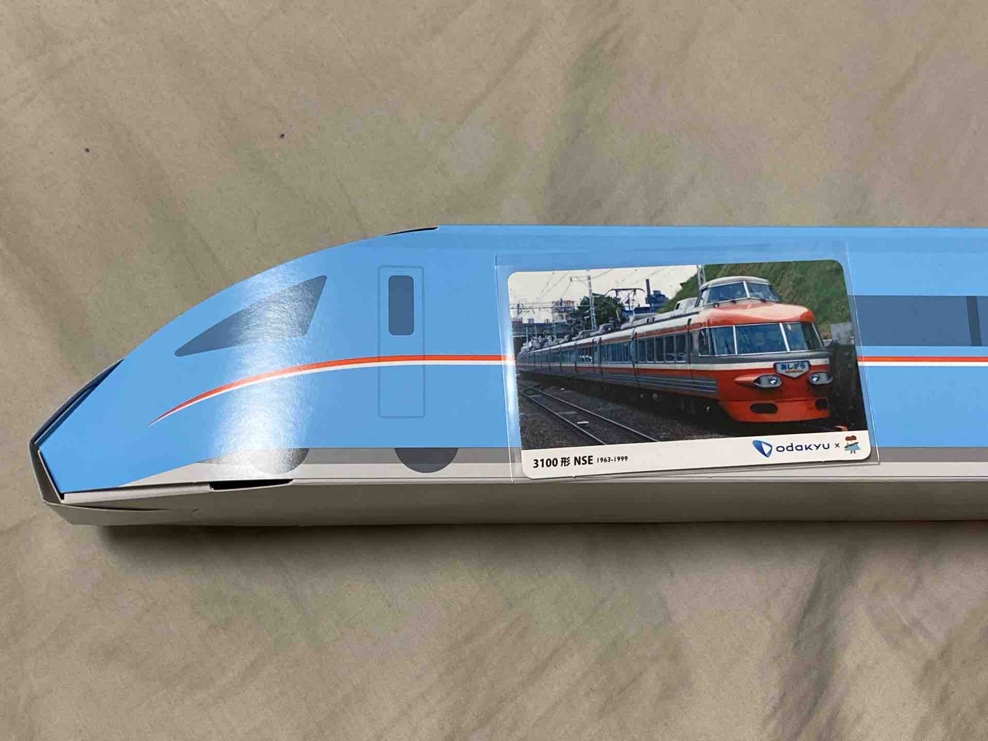 箱を自分で取るのは、箱の中に両面テープでロマンスカーカードが貼り付けられているからです。
