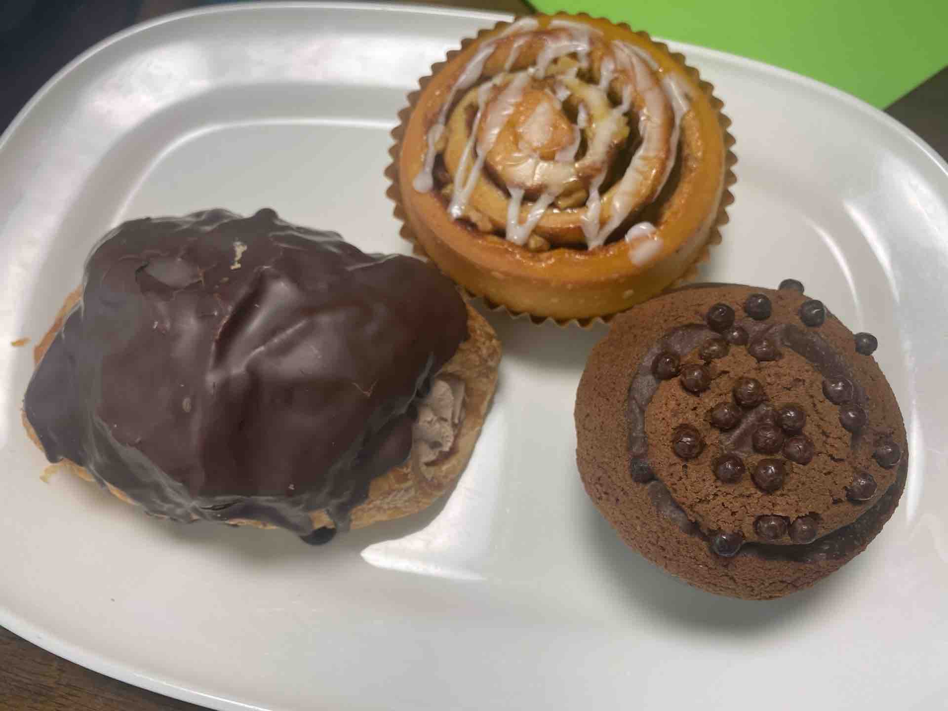 デニッシュにチョコレート風味のホイップクリームを詰めた贅沢なパンです。