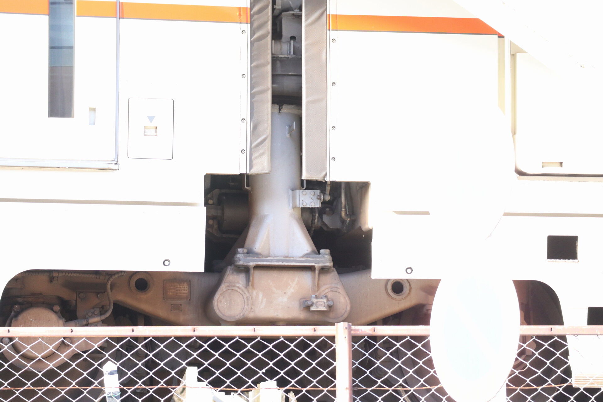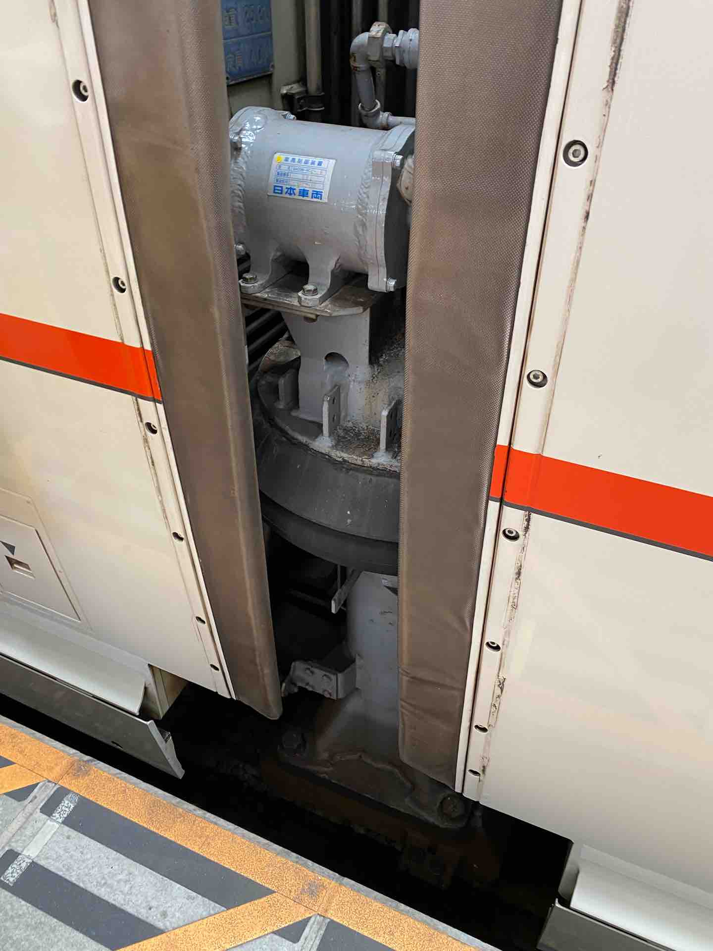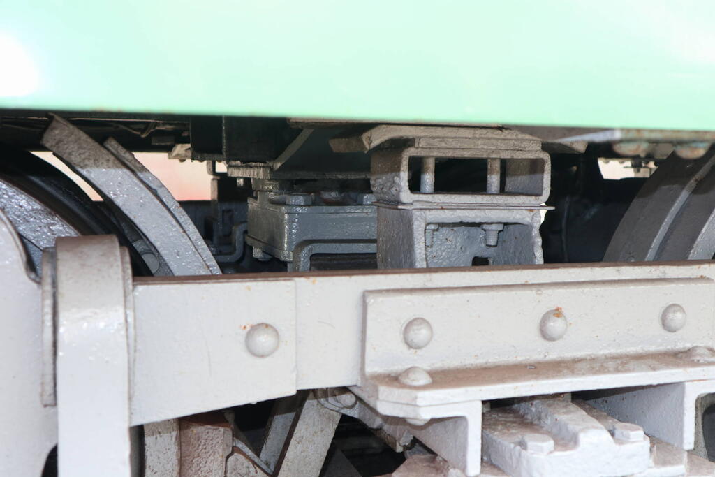 側受は江ノ電と同様、台車の内側、貫通路の両脇に2か所ずつ設置されています。