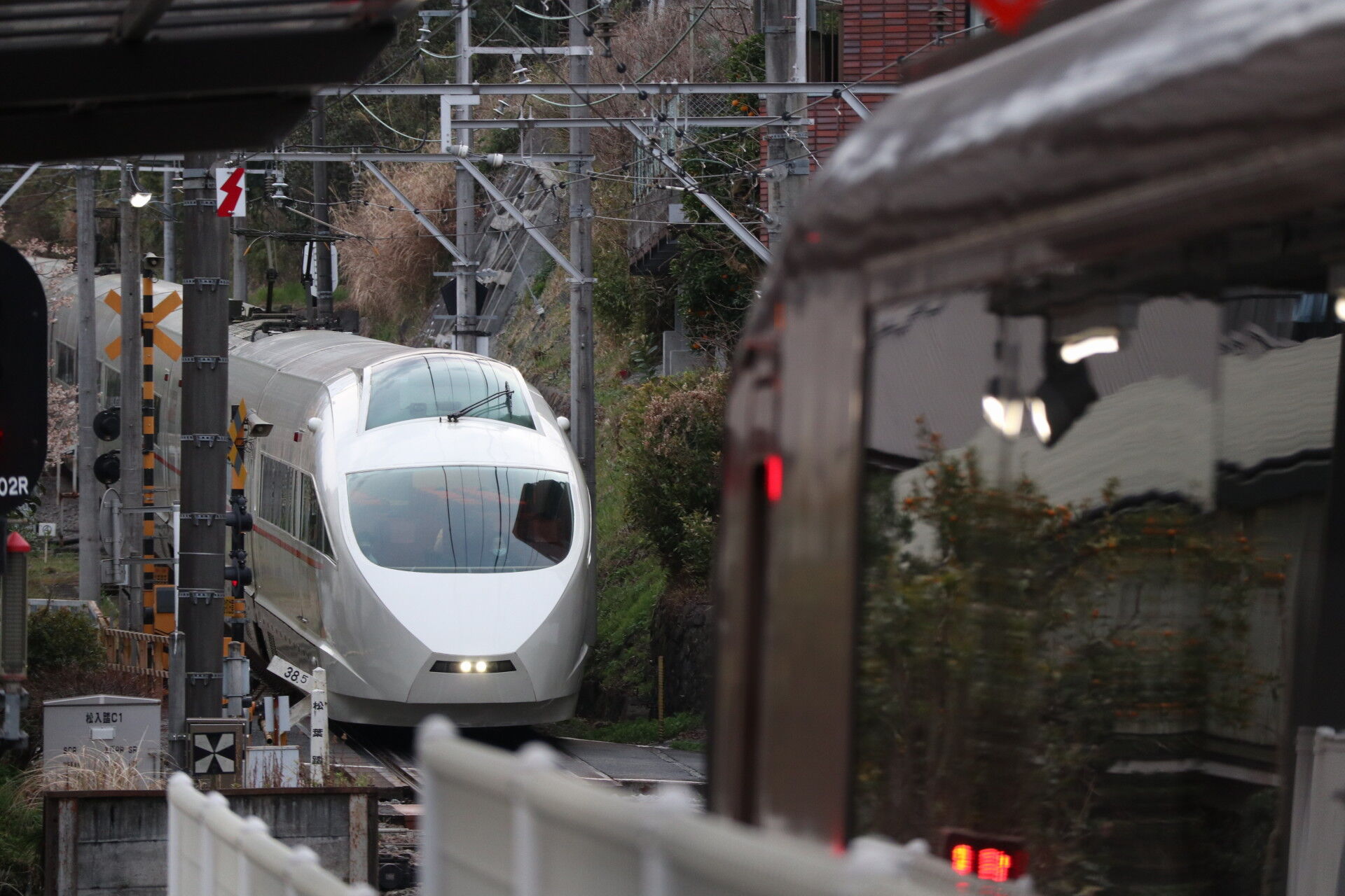 ぜひJR四国の振り子ダンスみたいに、海老名検車区とかでテスト用の機能とか使ってわざと傾斜させてみせてほしいですよね。ちなみに先頭車は傾斜角が1.8°に抑えられているので、理論上は先頭車と2両目で車体高さに2mmの差が出ます。もしそんな写真が撮れたら……そんなカメラもスキルも凄いものですが、ぜひ記録してみたいものですね。