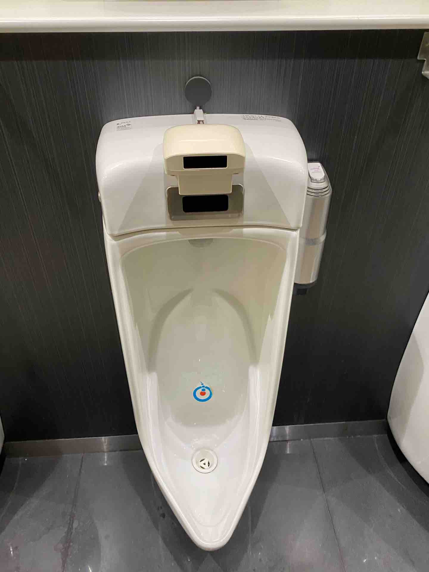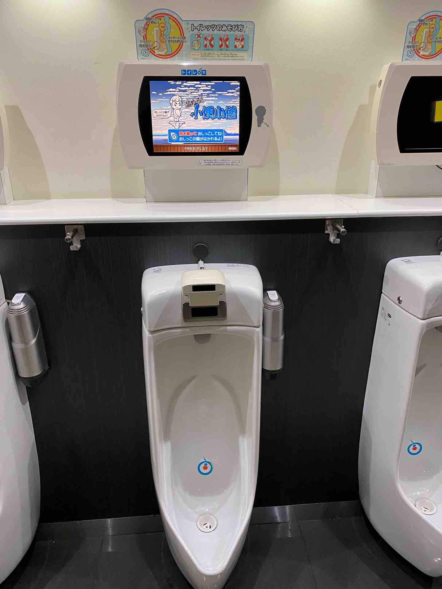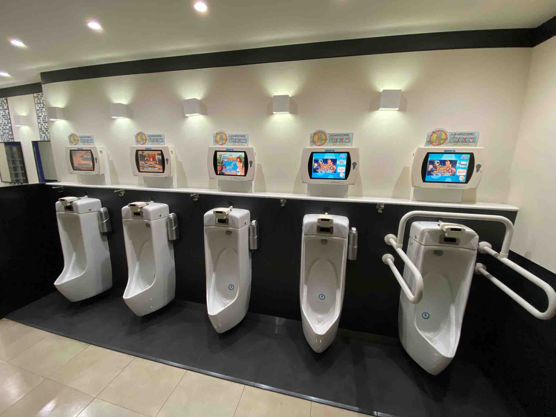 小便器の前に画面があります。