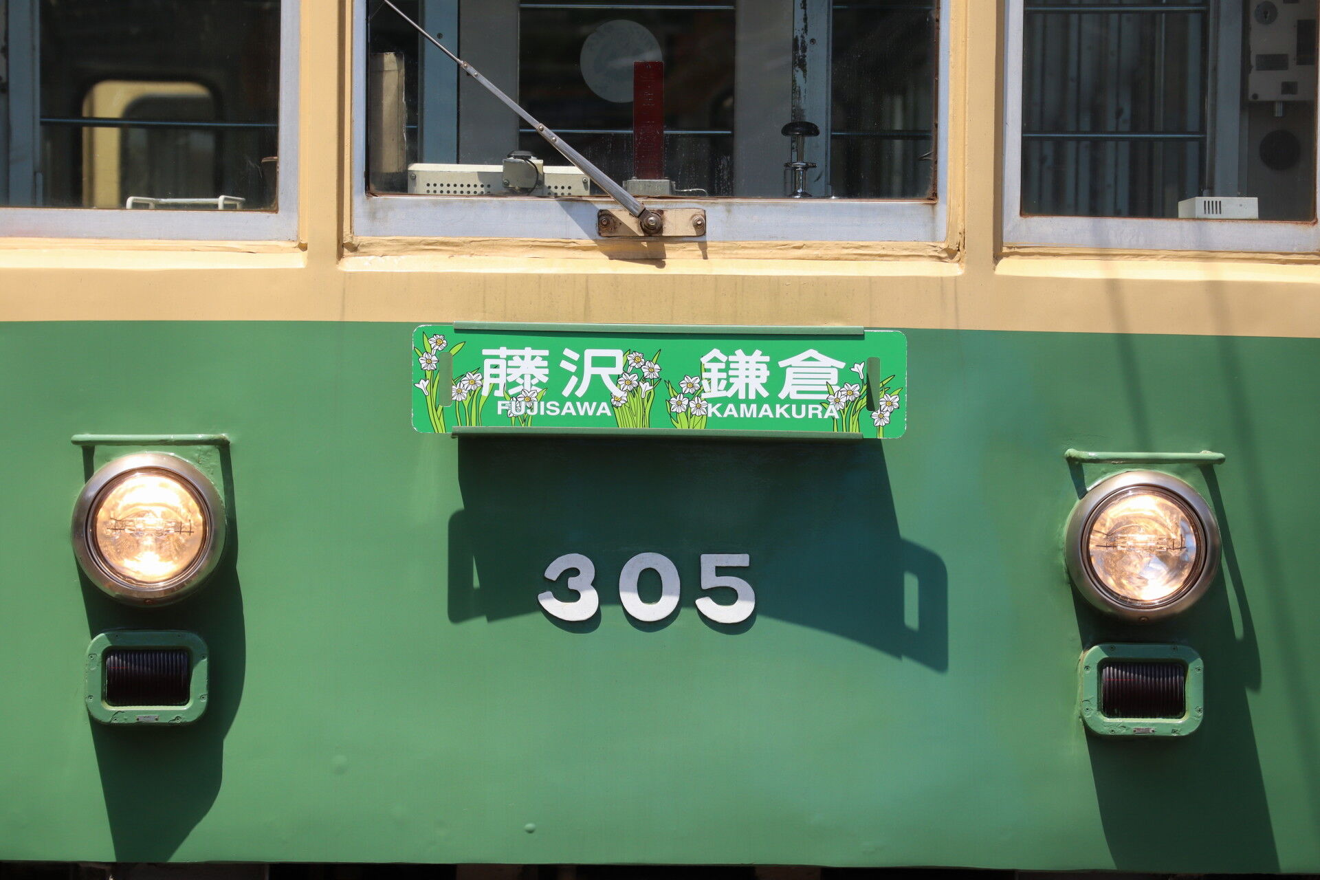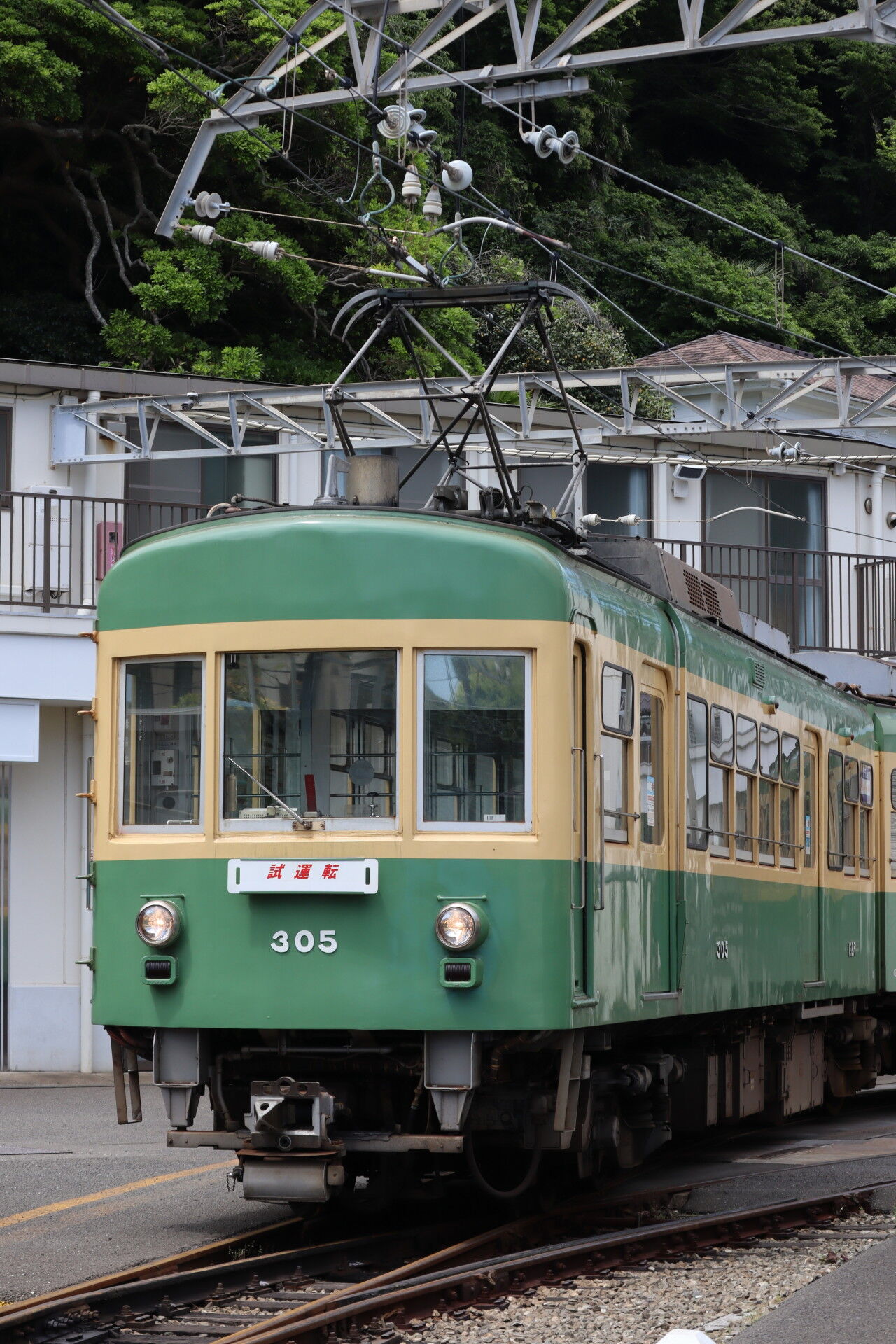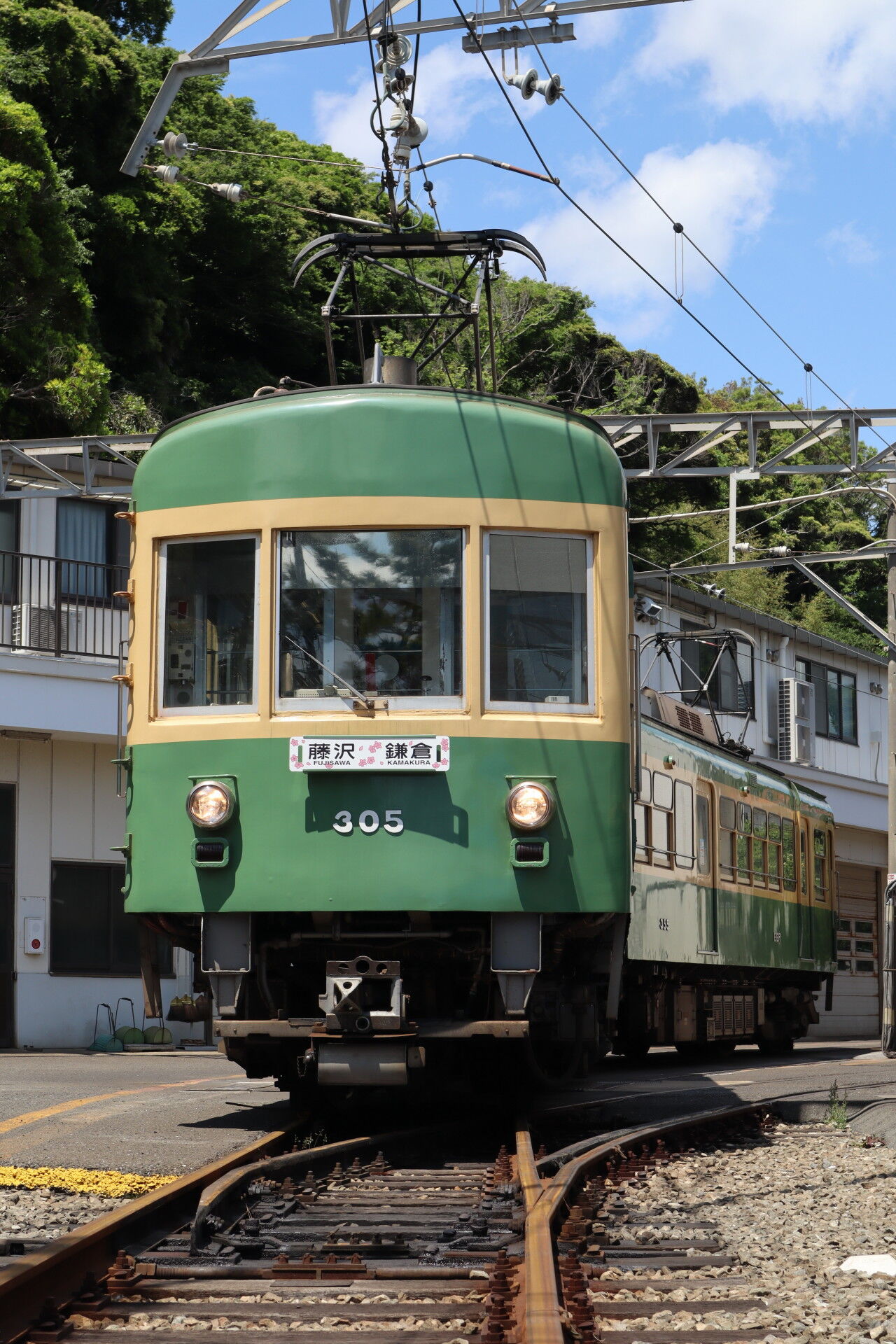 だいたい江ノ電の車って6日周期くらいで車庫に入るんですが、今回305は周期とは違う日曜日にわざわざ予定を空けて登場しているのでこの辺の車両繰りとかきっと調整されたんでしょうし、方向板のお披露目タイミングの調整とか、グッズの販売タイミングとか、全てが綿密に練られた計画で、毎度毎度「やられたーー」って思っちゃいますね……。