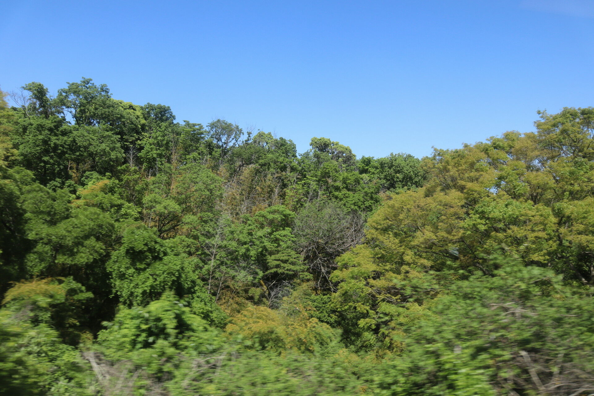 昨日のなんも見えない雨とは変わって綺麗な緑と空です。