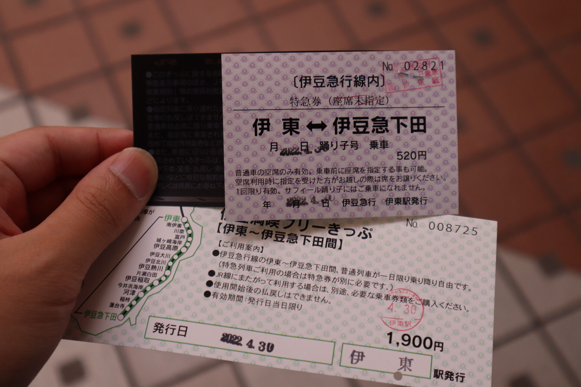 裏にはホチキスで止められた伊豆急行線内の特急券。