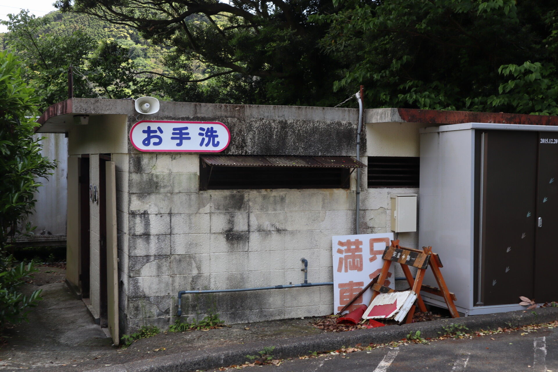 駐車場の脇にコンクリートブロックで作られた(お手洗)なる建物が。