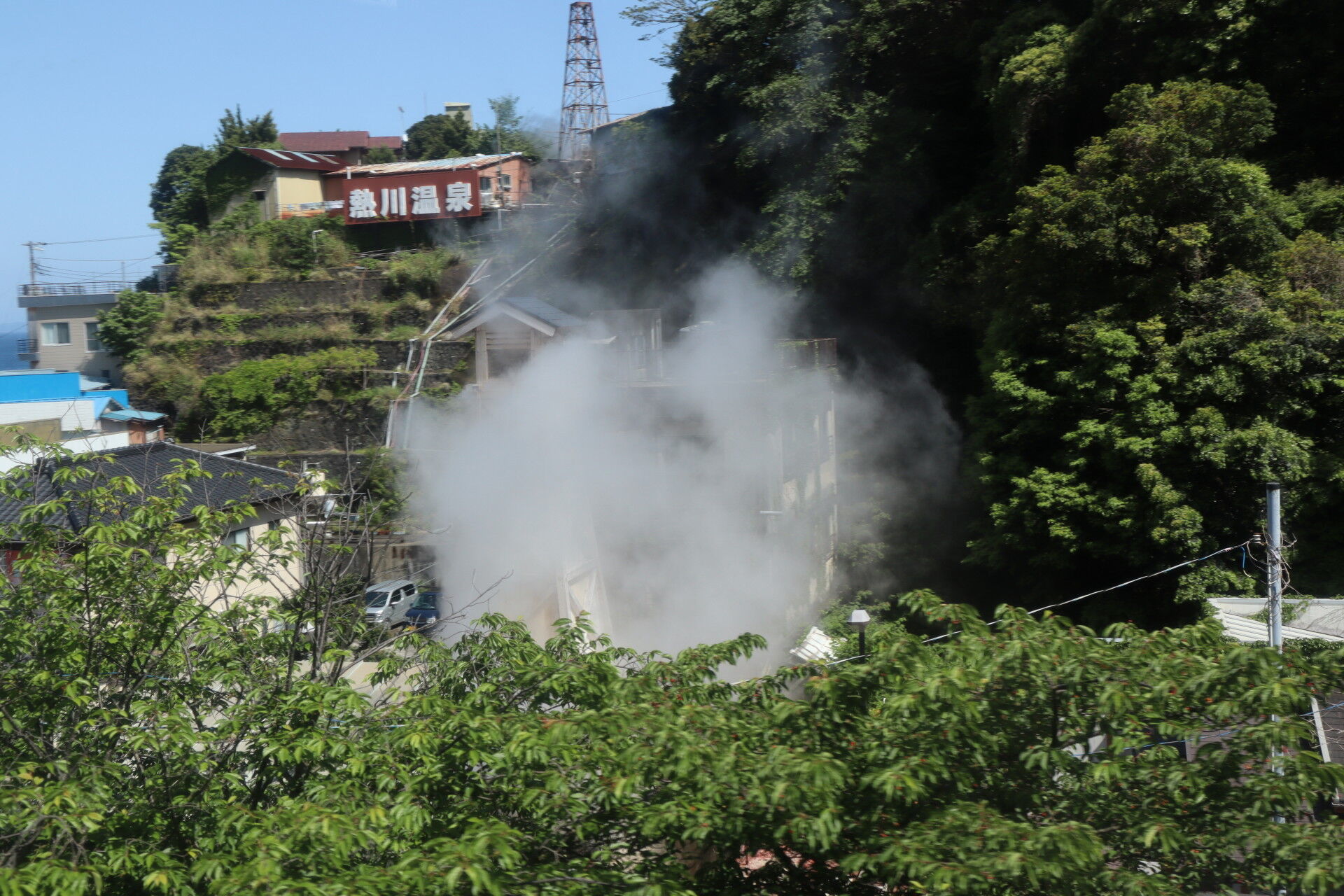 もうもうと上がる熱川温泉の湯煙。