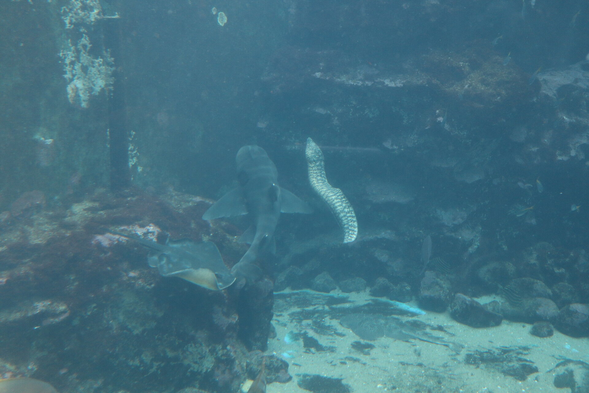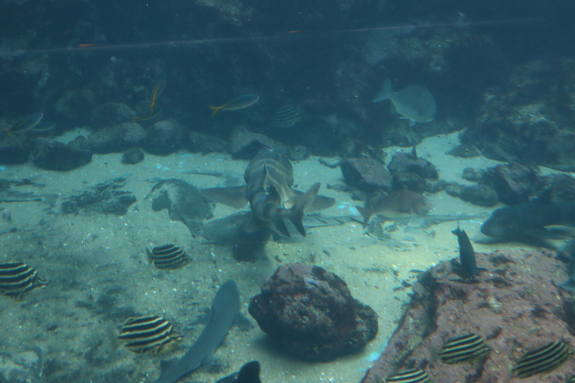 この岩場には大量のサメが入り込んでいました。ネコザメとかそういうタイプの海底でコソコソしてるタイプのやつ。