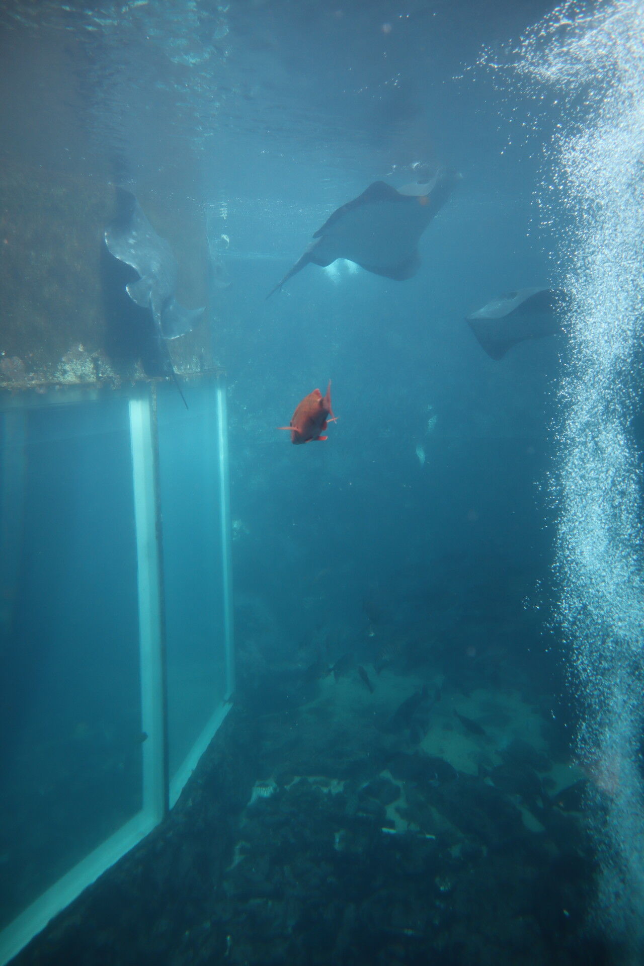 入口脇には小さな窓があり、中にはエイの泳ぐ姿が!