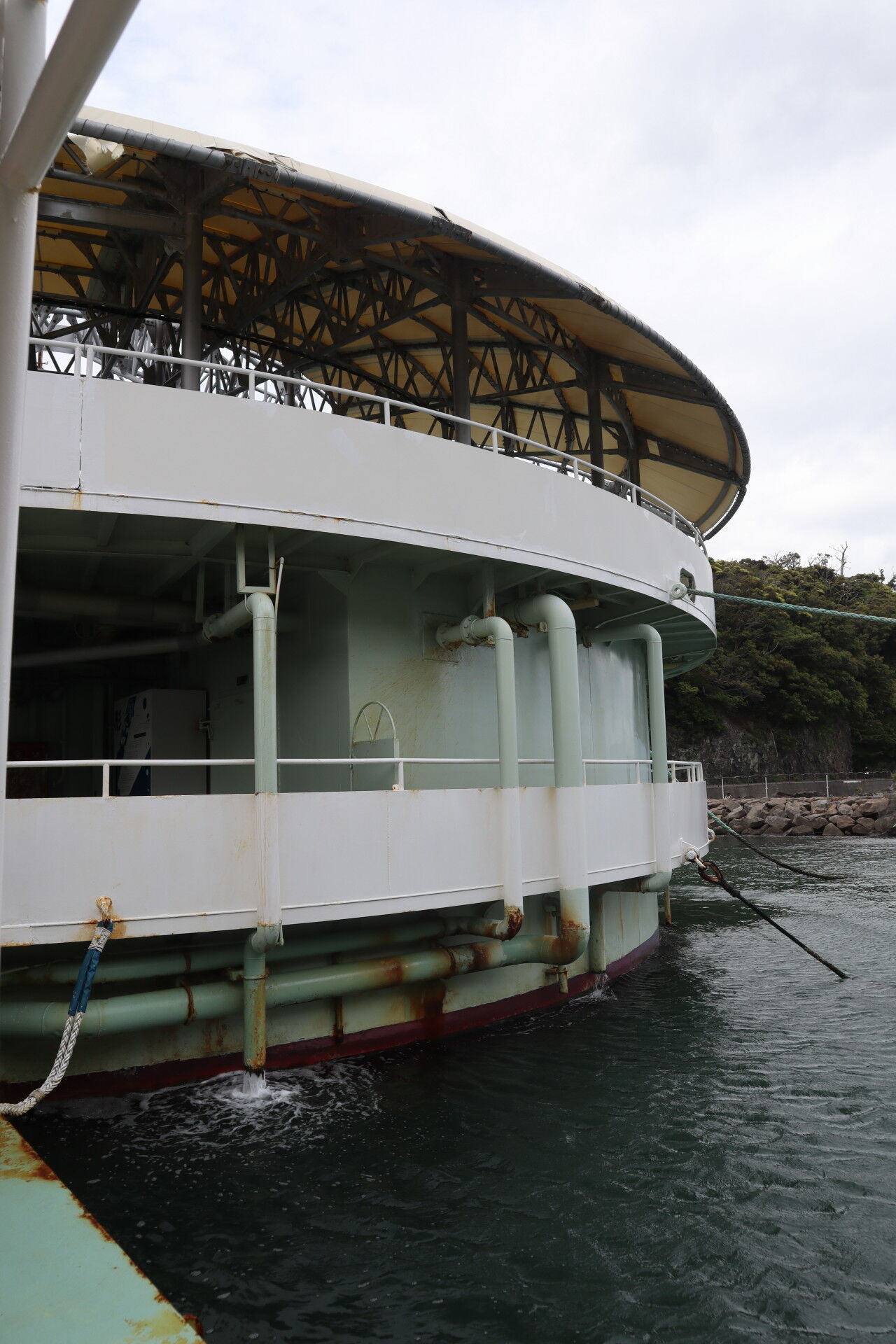 ペリー号の船底に溜まったビルジを排水しているのか、あるいはプールの水を入れ替えたことによる排水なのか…。