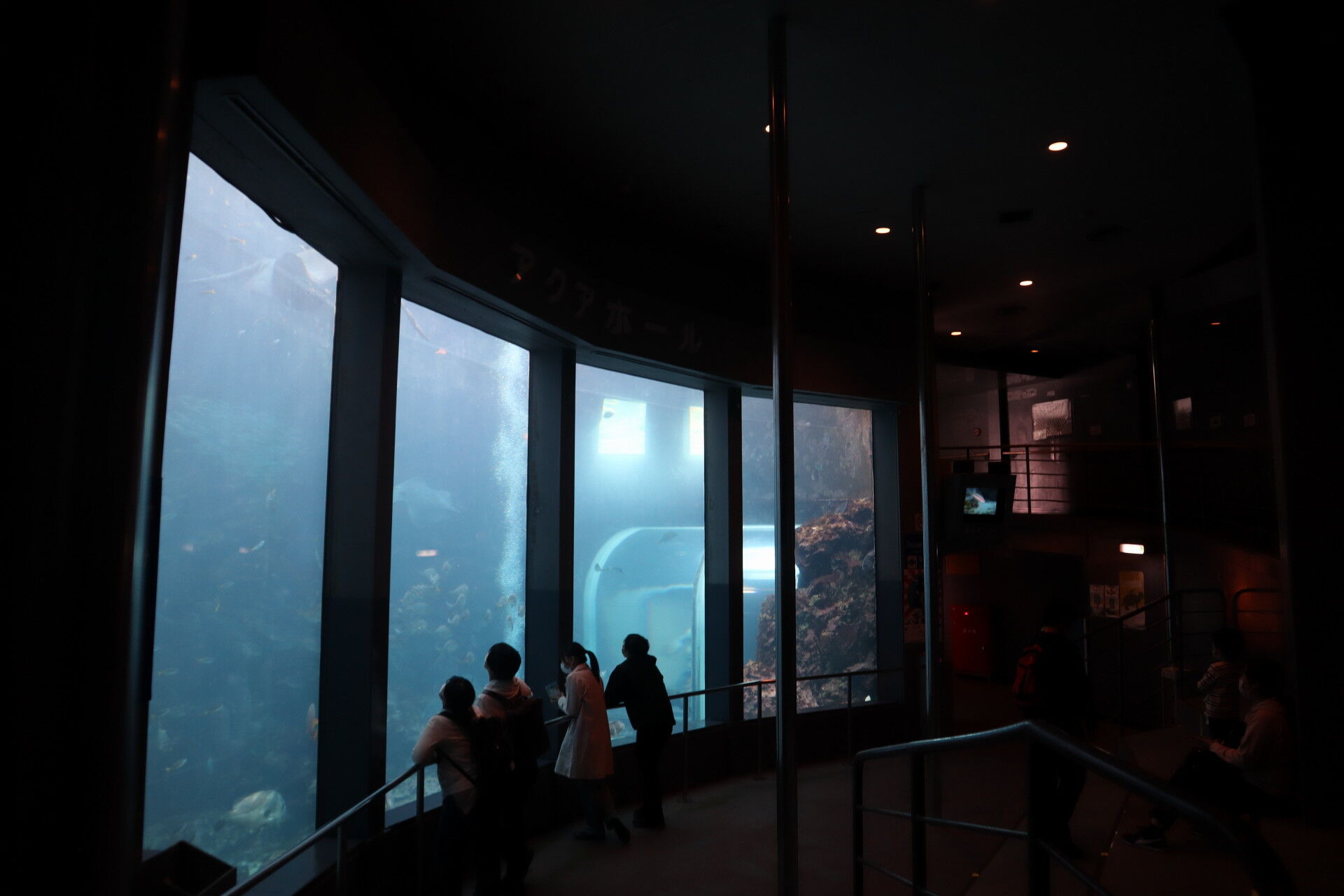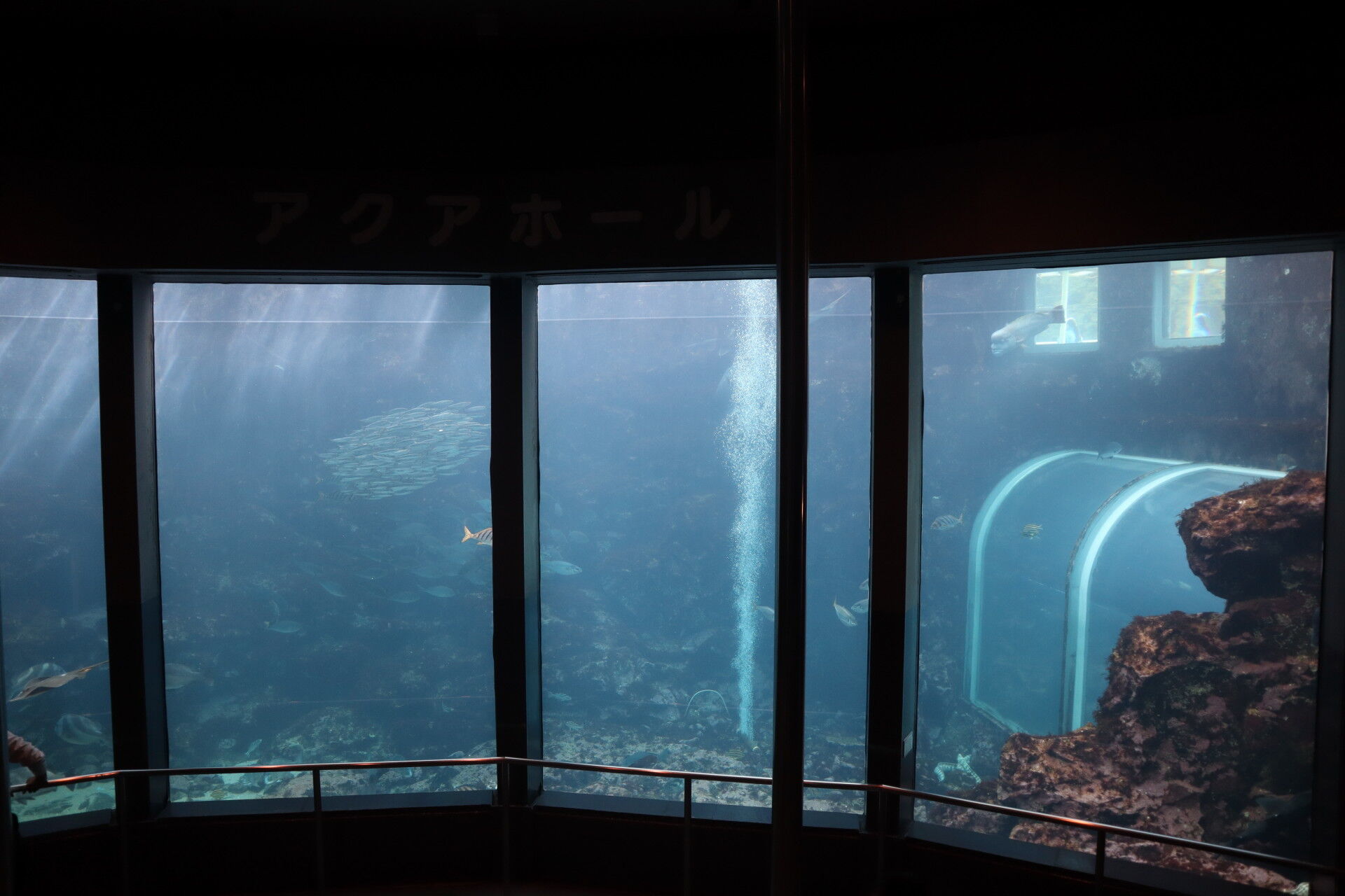 新江ノ島水族館とかだと1枚なんでしょうけど、1993年に建造された船ですから、ちょうど八景島シーパラダイスと同い年。と考えると、エスカレーターの水槽なんかを考えたら当時としては最先端の巨大水槽だったのでしょう。約15年の間に大きな技術革新があったのですね。