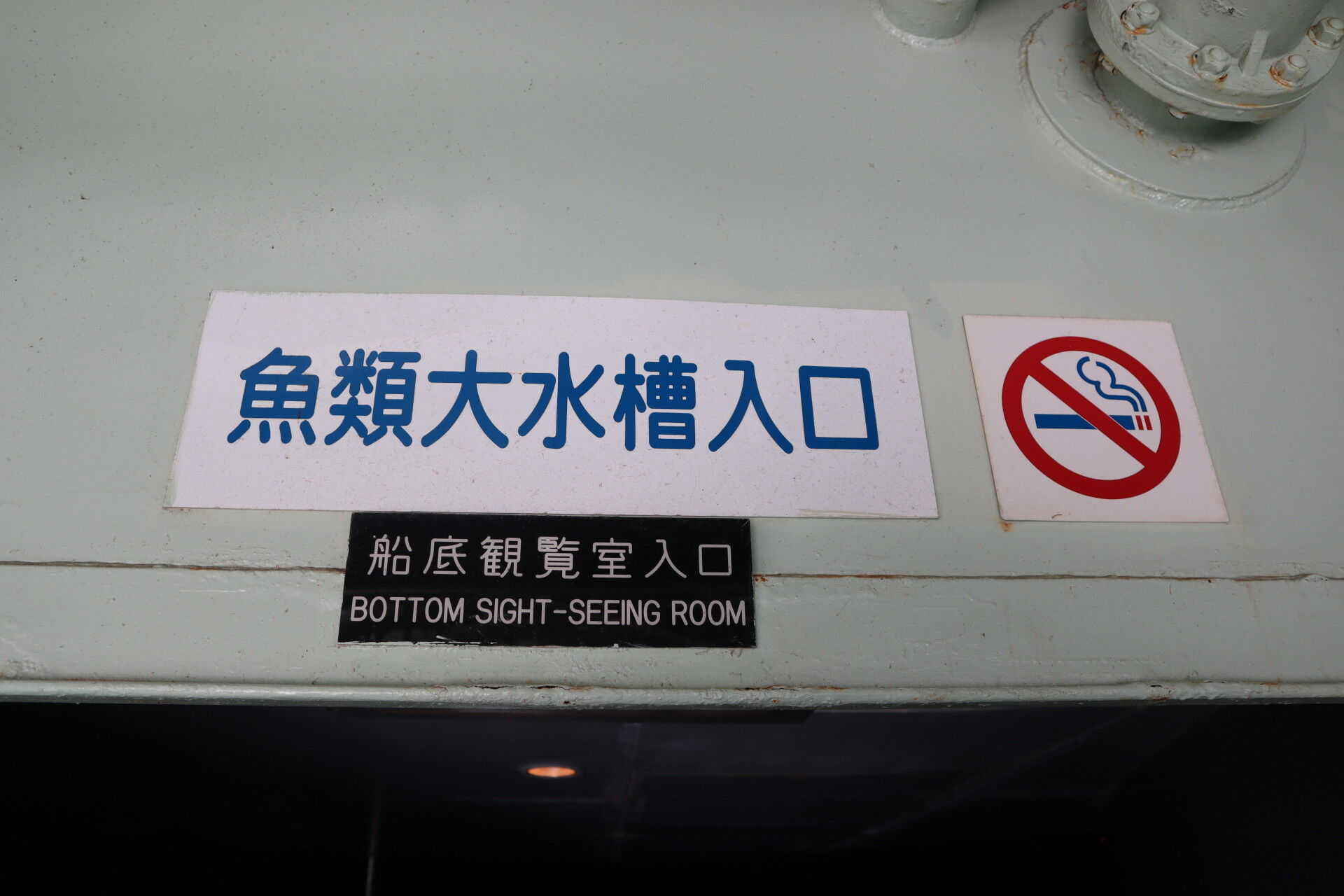 船底観覧室入口と書かれた札もなんというか、船ですねぇ。