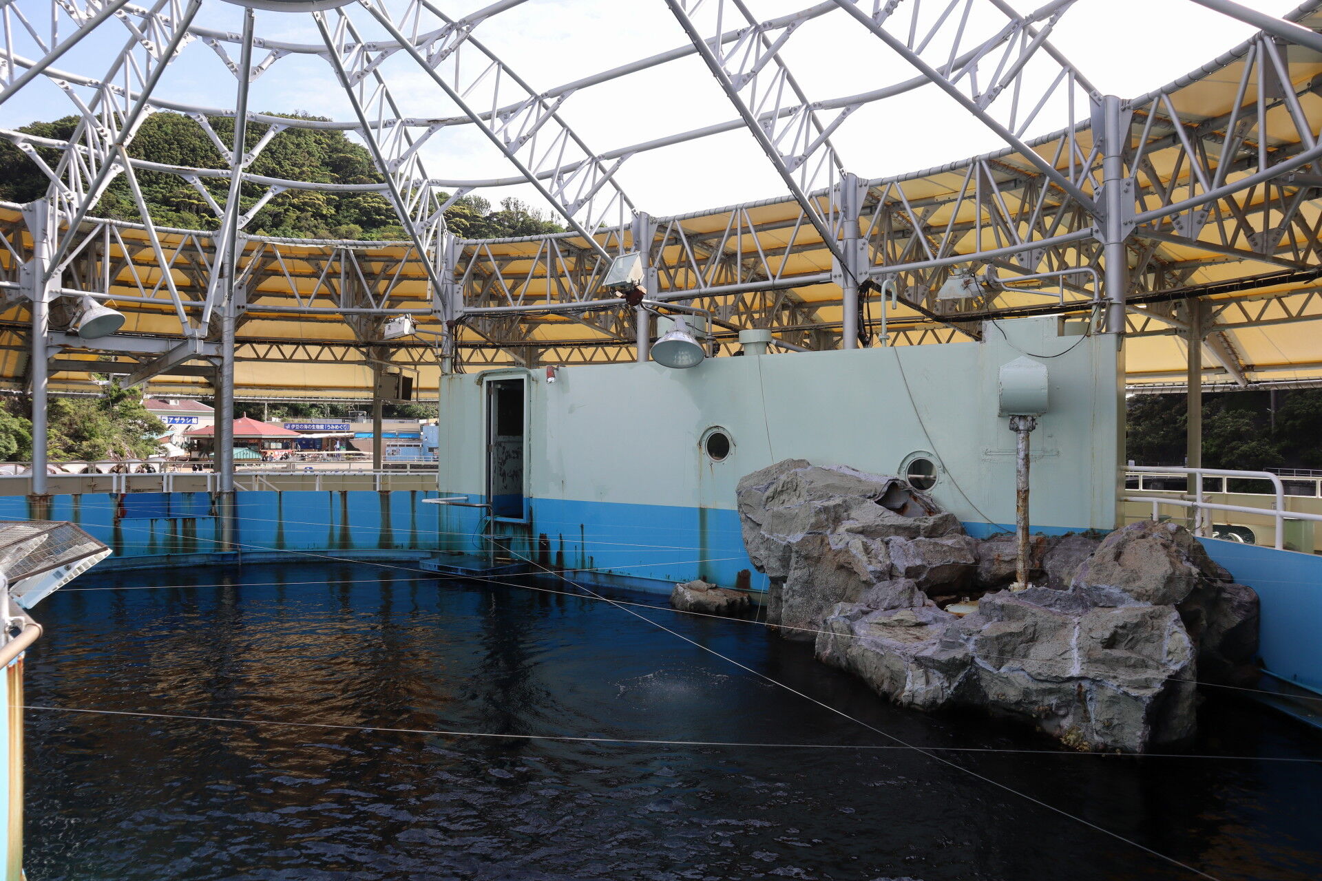 イルカショーのスタンド。