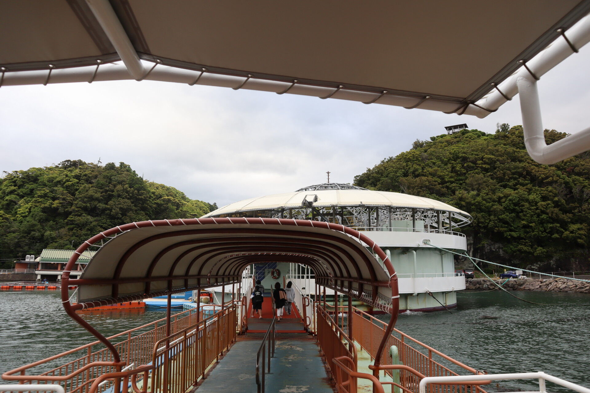入江は浅く見えるので、ジンベエザメの飼育なんて本当にできたのか、映像が見たい…。