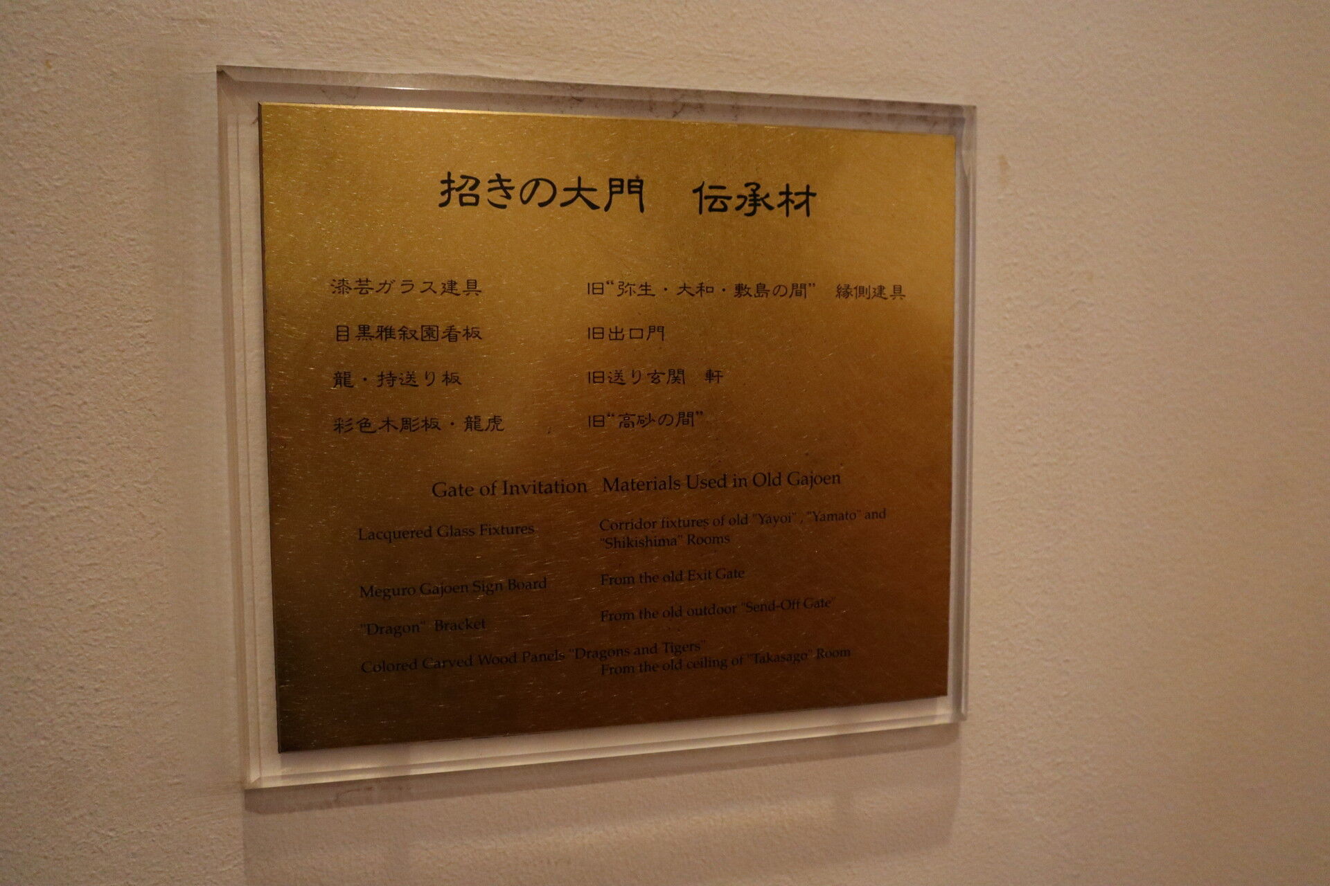 招きの大門といい、前に掲げられた目黒雅叙園の看板はここにあった旅館の玄関から移設されたもの。