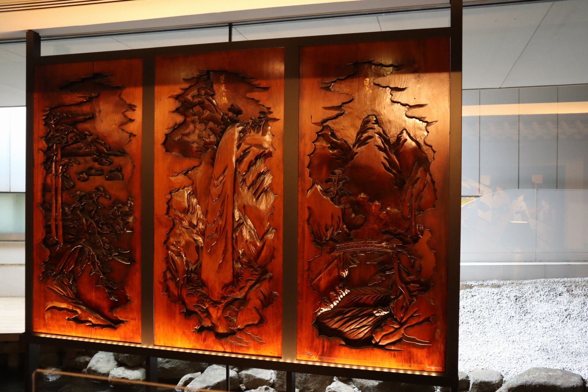 雅叙園ではこのように旧旅館から受け継いだ美術工芸品を「伝承部材」と称して随所に配置しています。