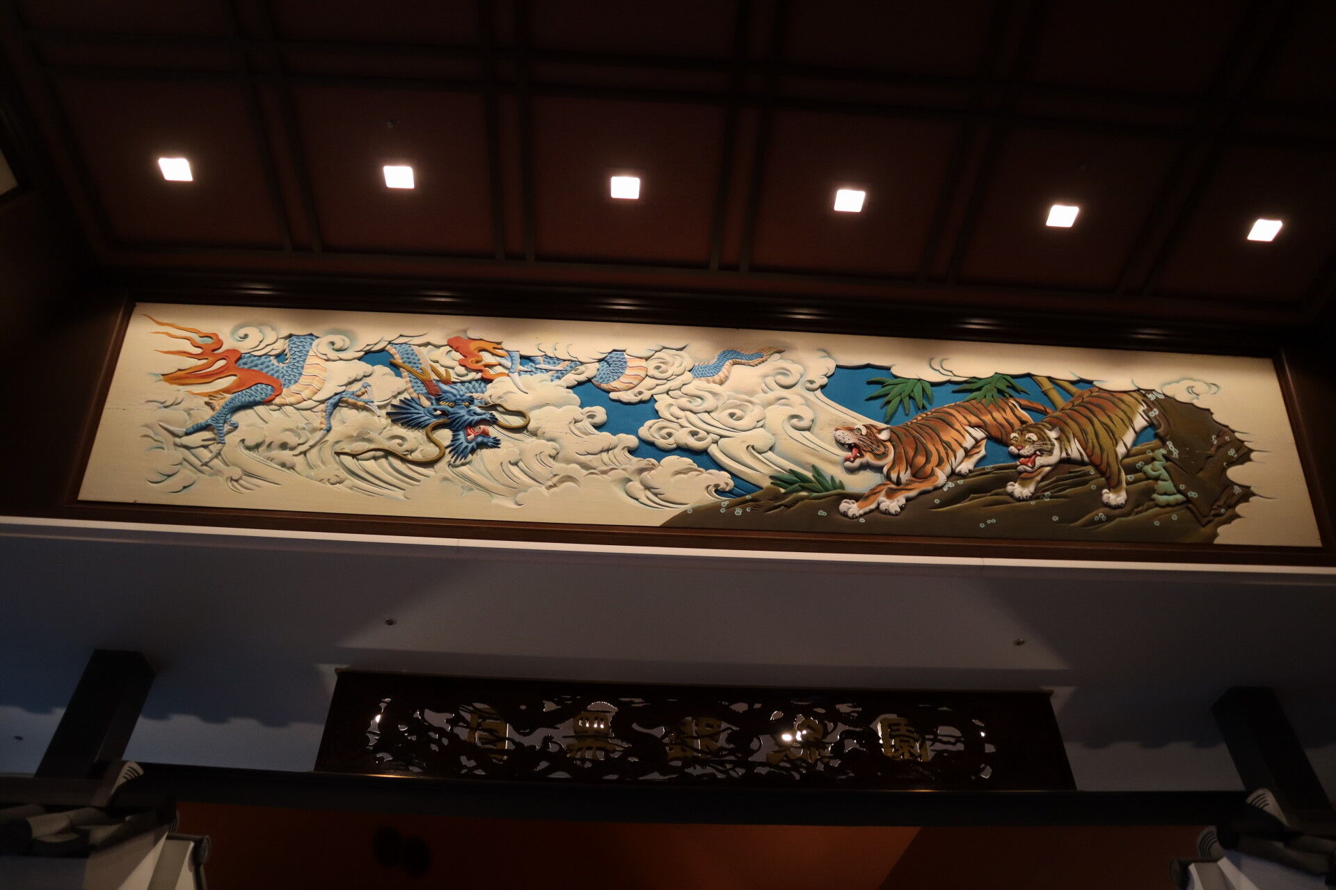 招きの大門の中には色彩豊かな欄間が飾られています。