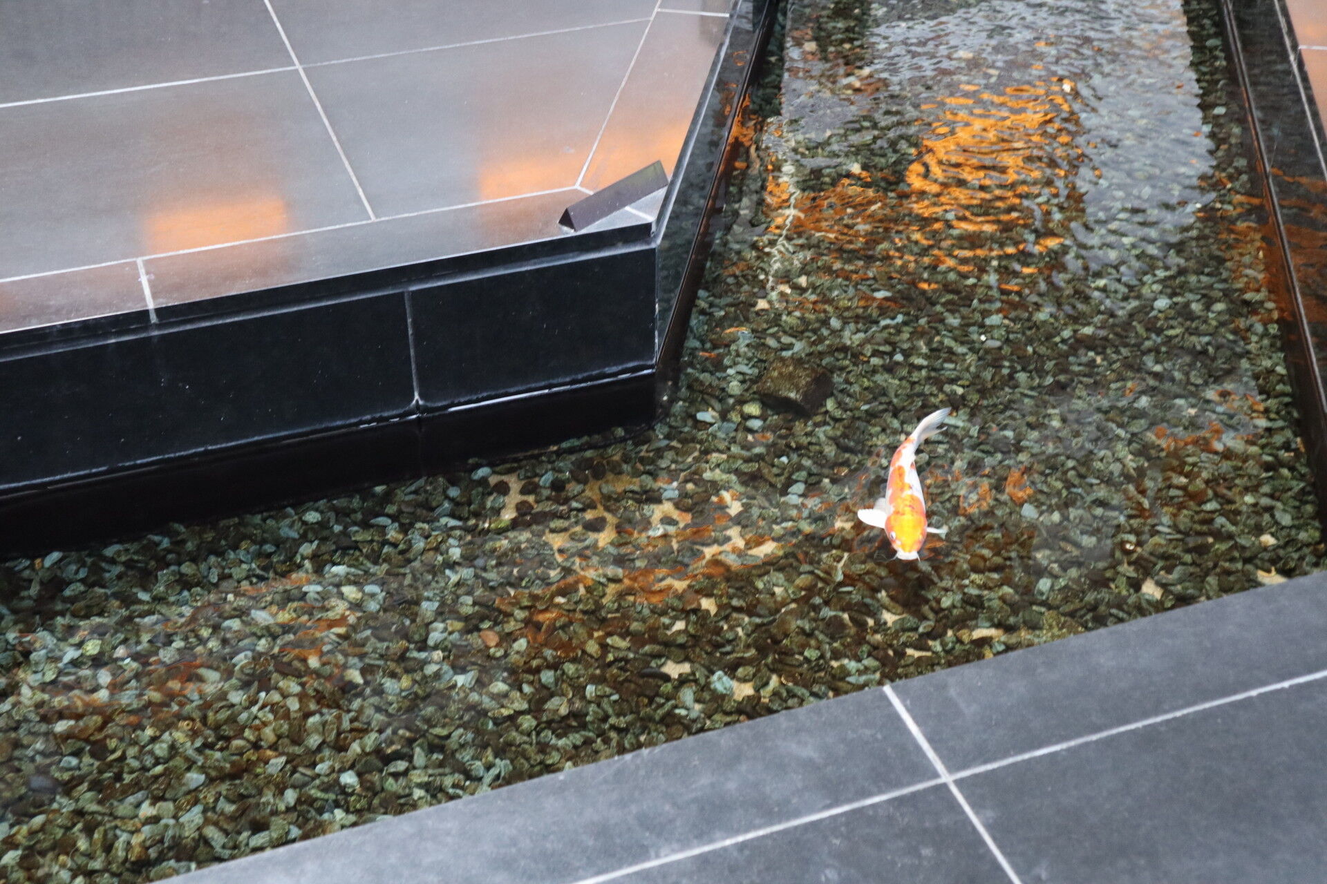 小さい錦鯉が流れてきては泳ぎ去っていきます。