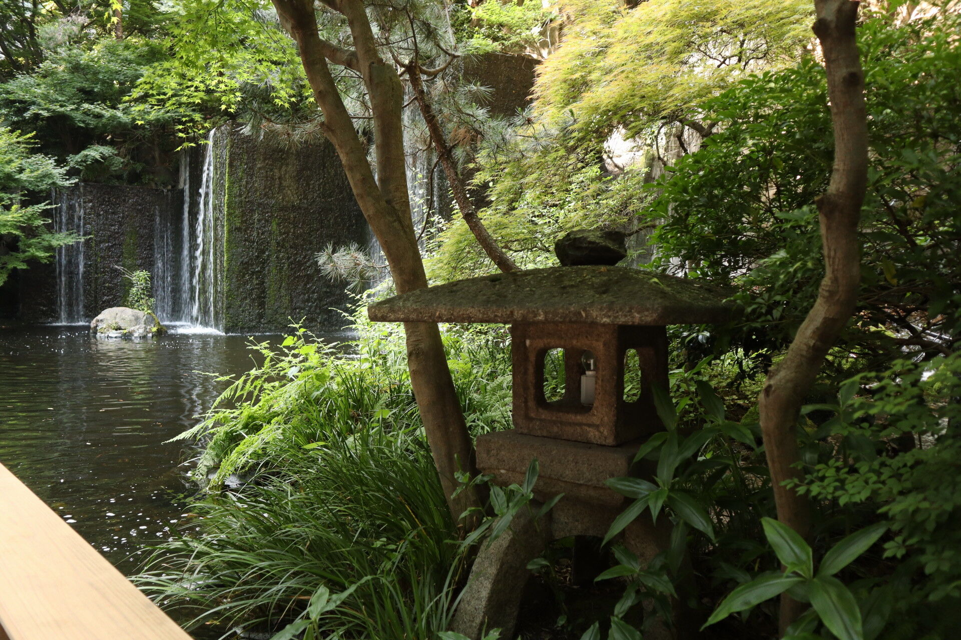 ここには大きな滝のある池があり、大きな錦鯉はここにいます。