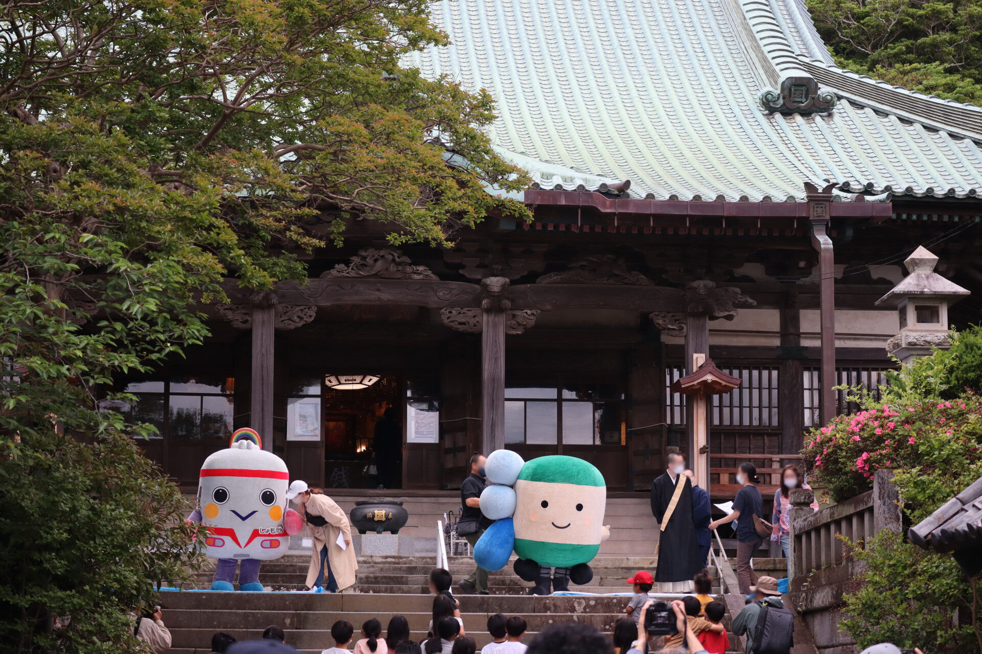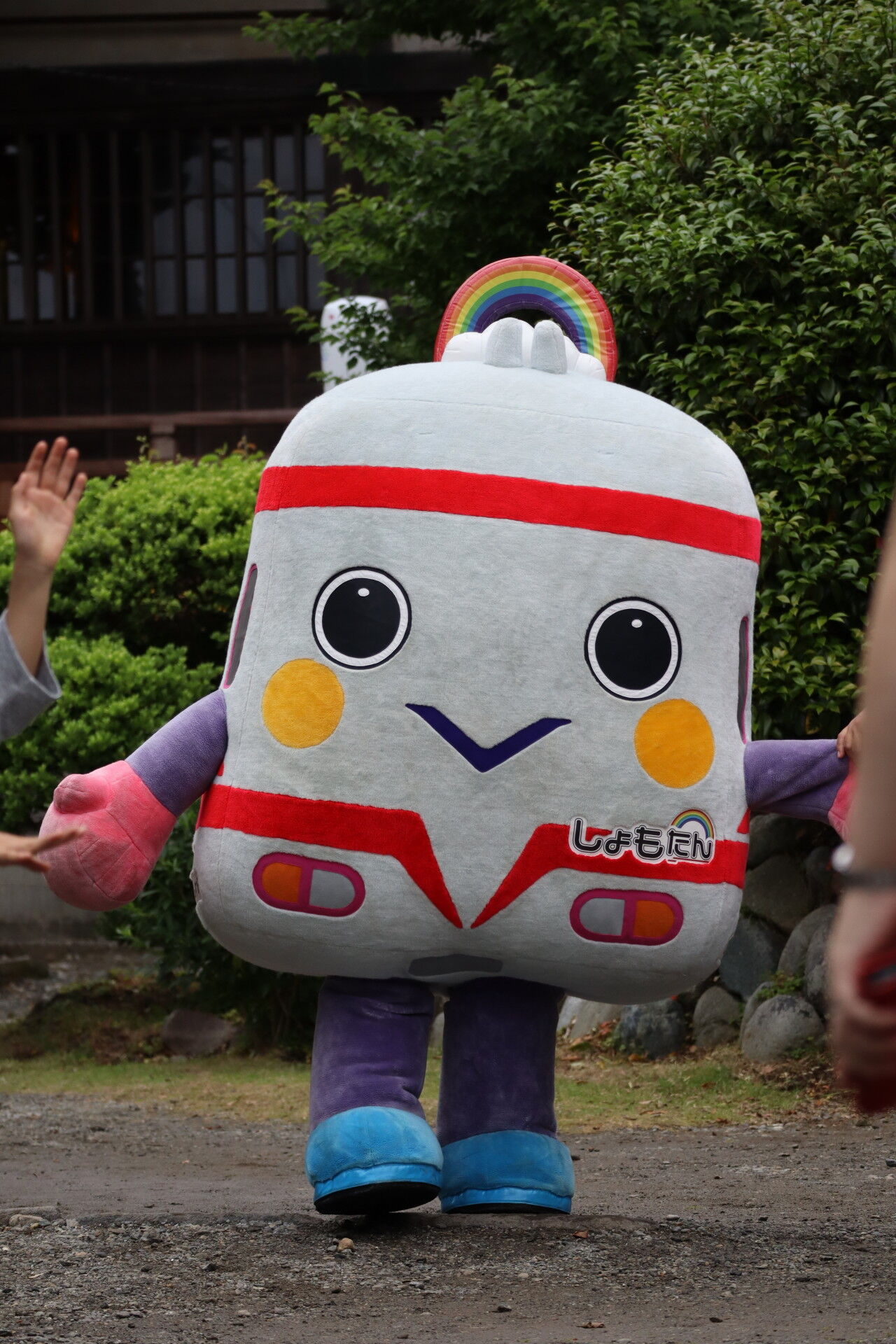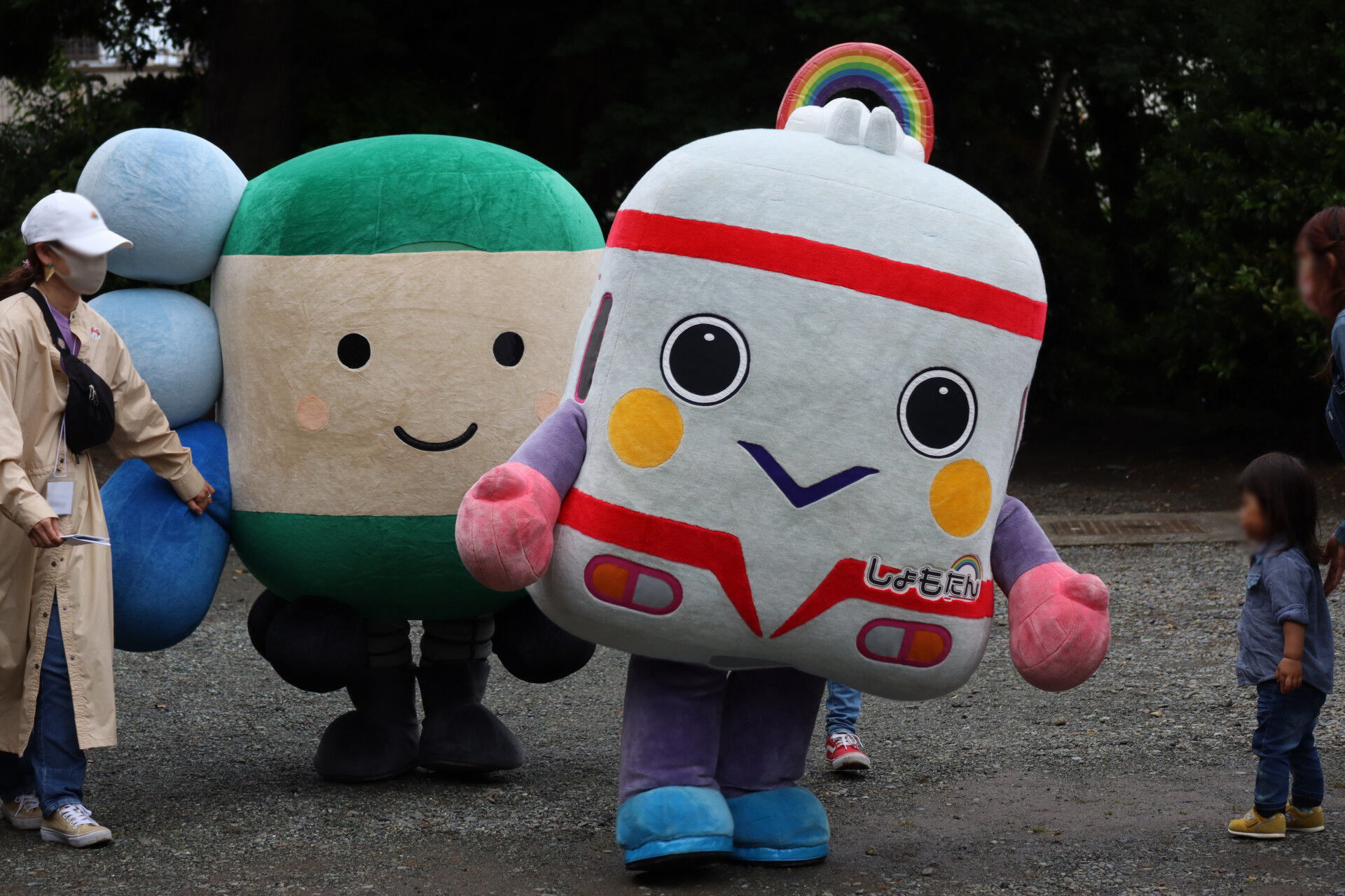えのんくんやしょもたんと一緒に子供たちへお菓子を配っていました。