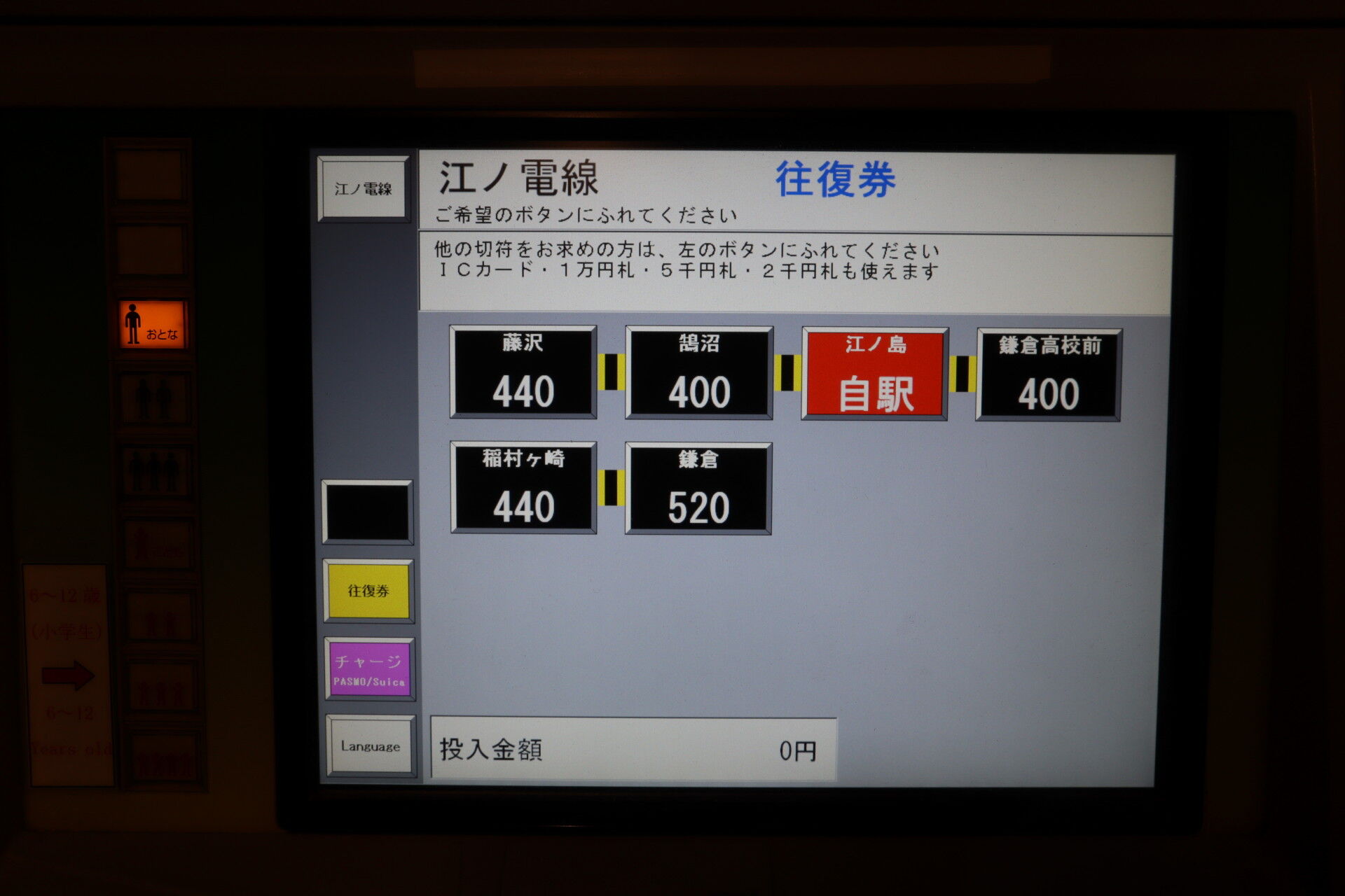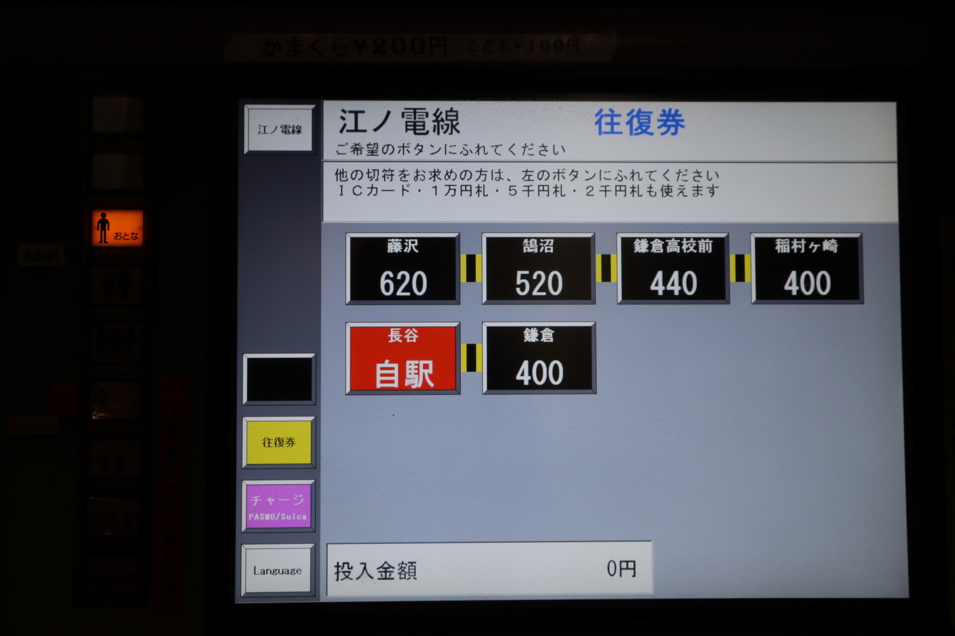 ところが無人駅の場合、藤沢か鎌倉のどちらかへの往復乗車券しか購入できません。