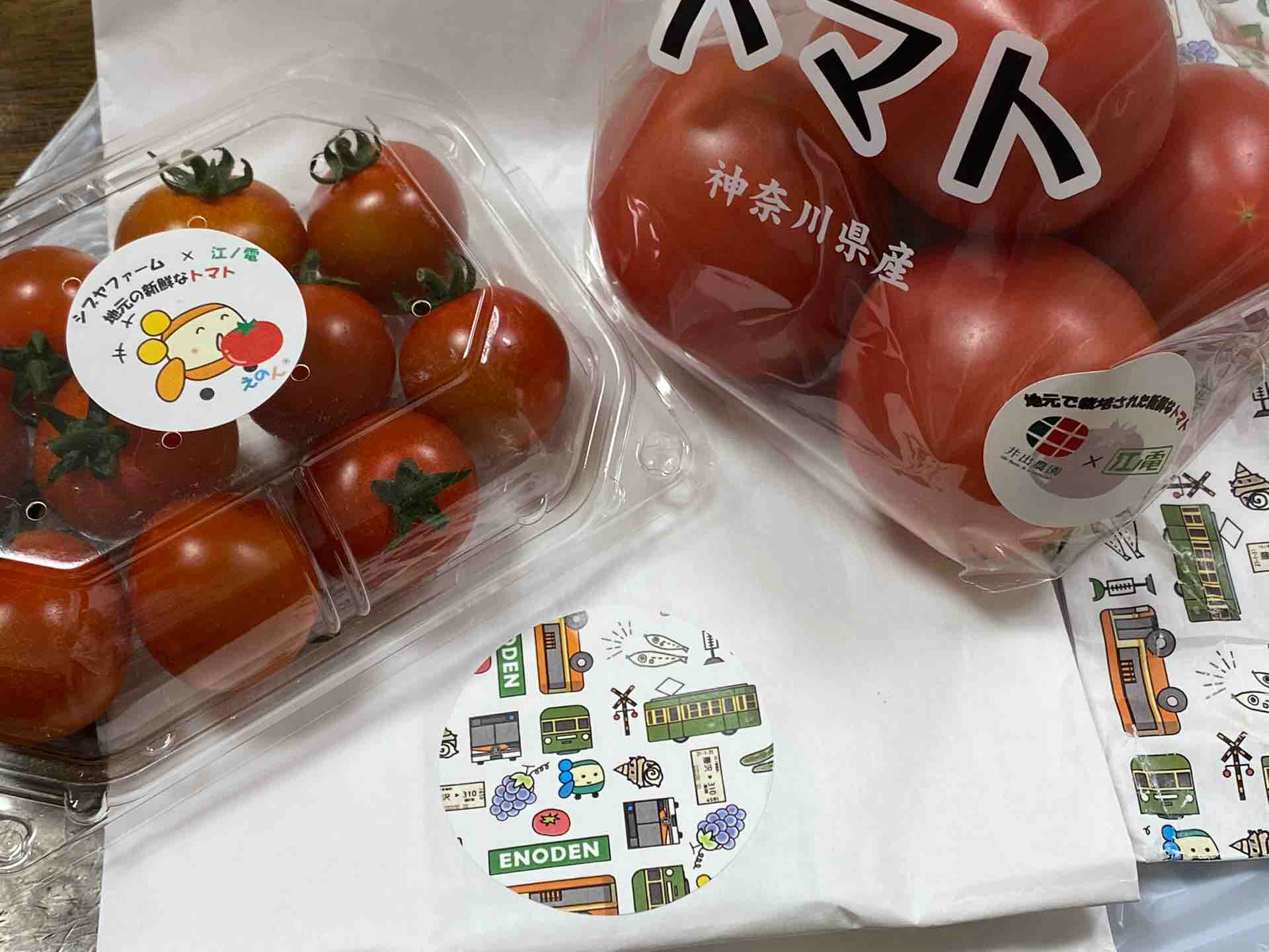 「江ノ電で運んできた野菜でーす」との宣伝文句。