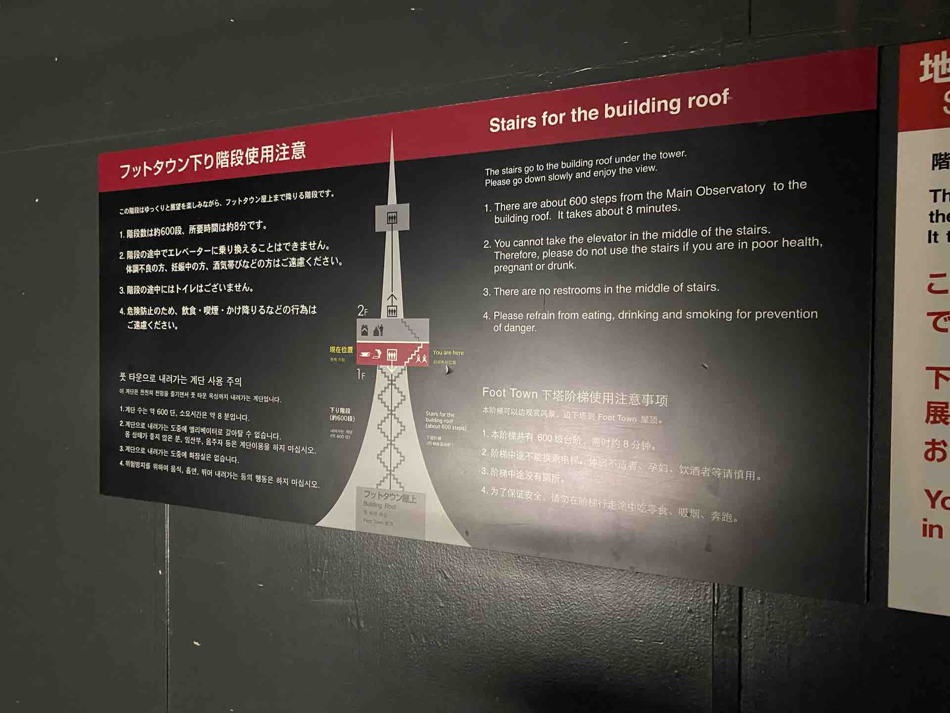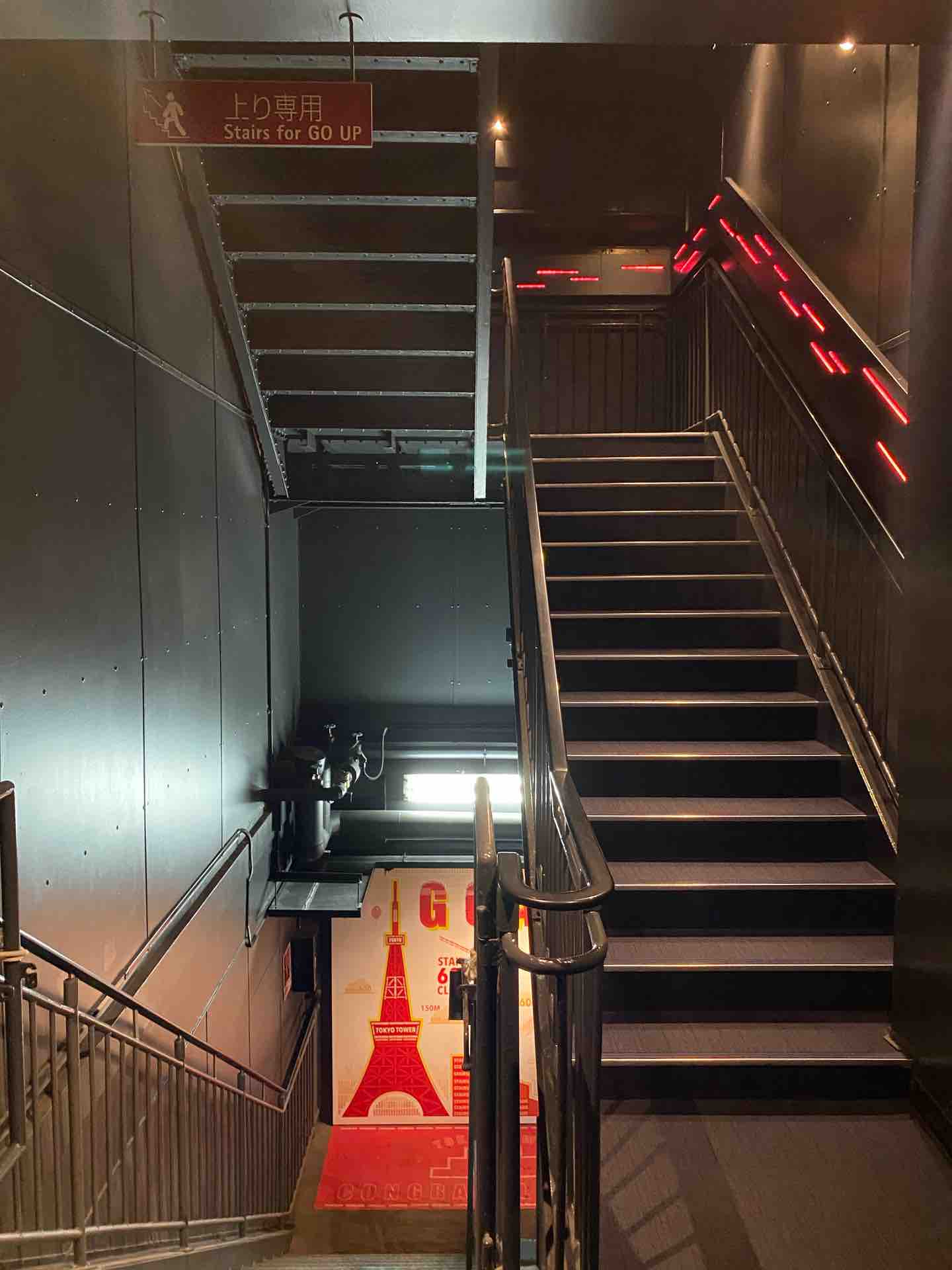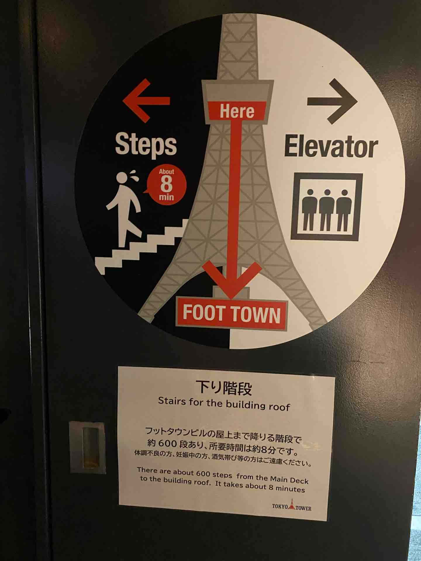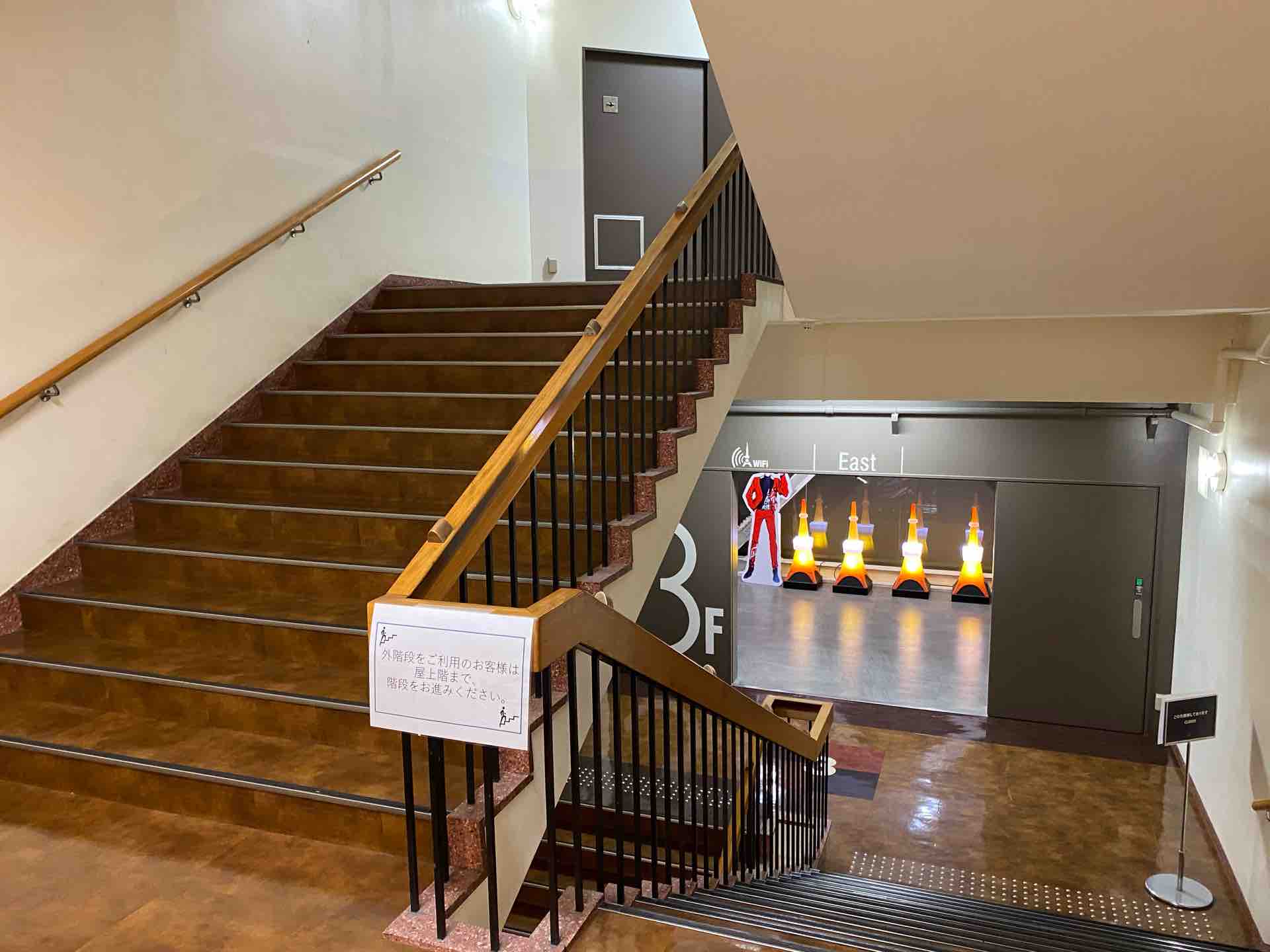 他の高い建物で、たとえば江ノ島シーキャンドルとかだと下りだけ階段という選択肢がありますが、こういう効果があるのだなと上り下り両方やってみて初めて実感しました。