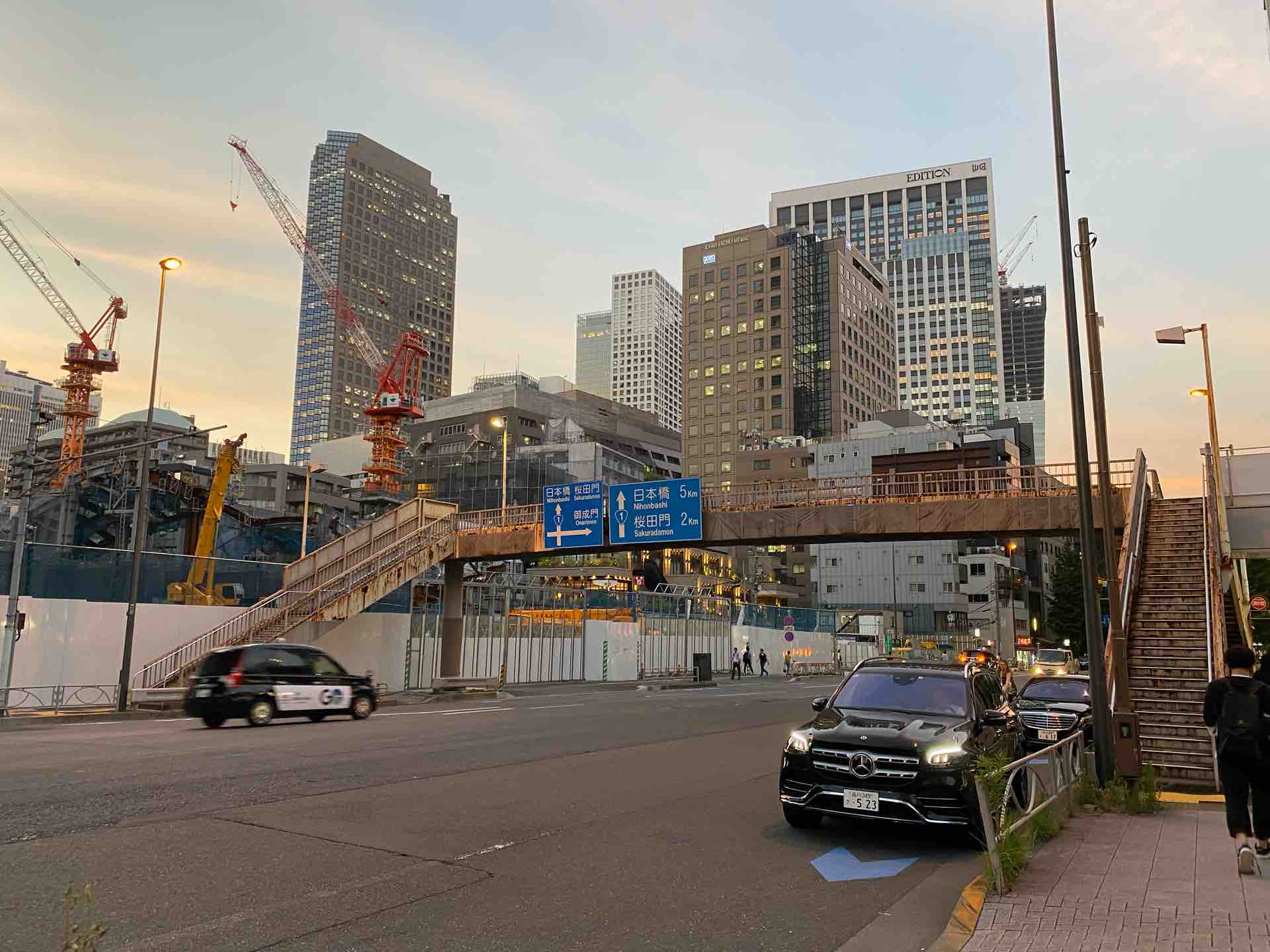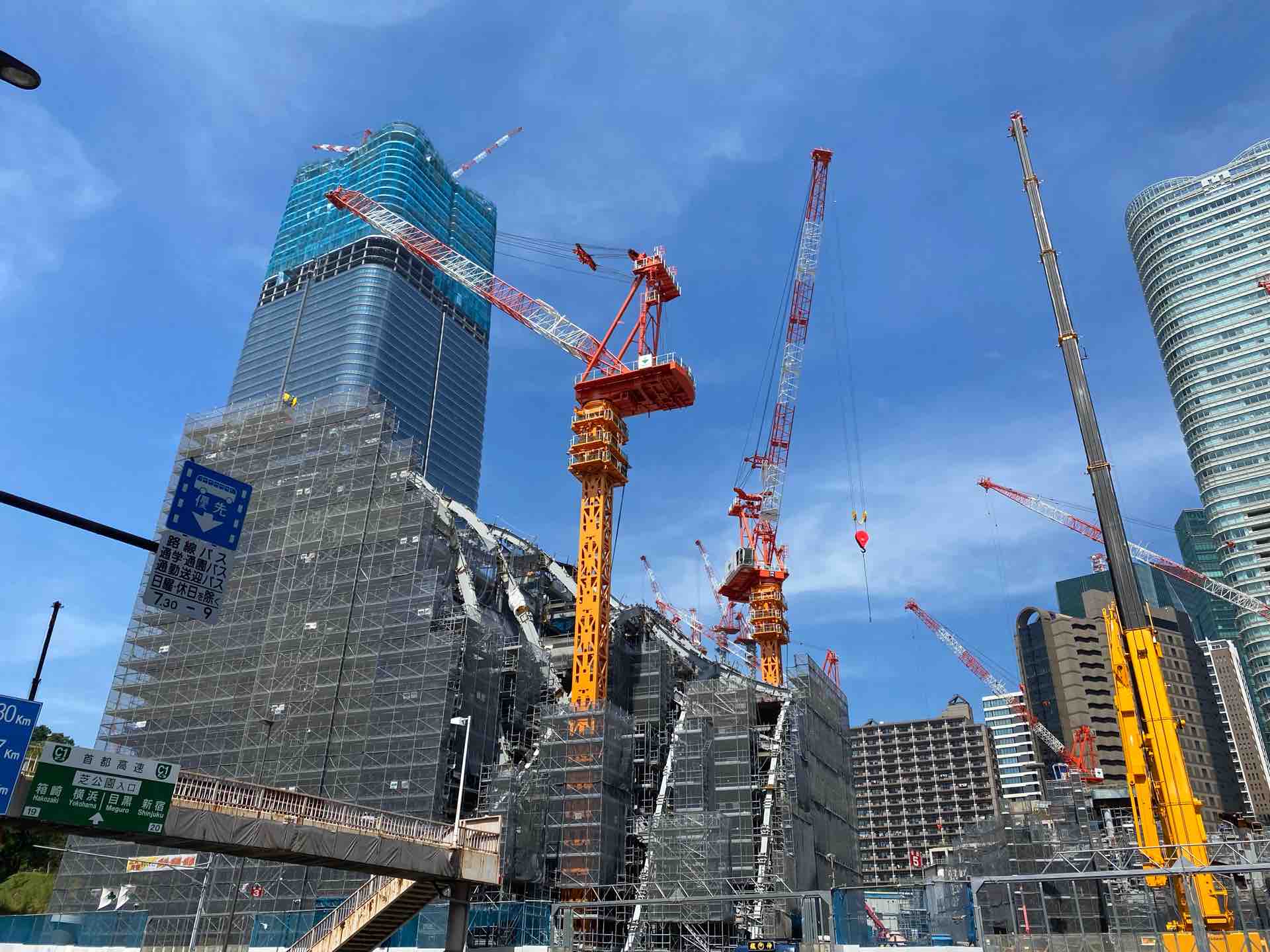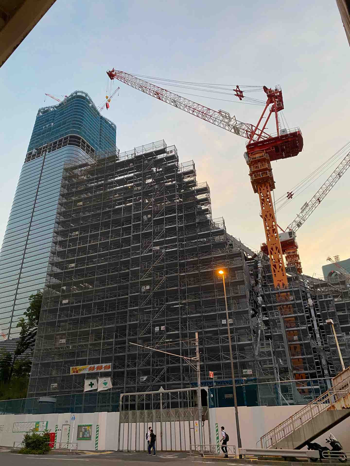 立派なビルを作るクレーンと、歩道橋のギャップ。