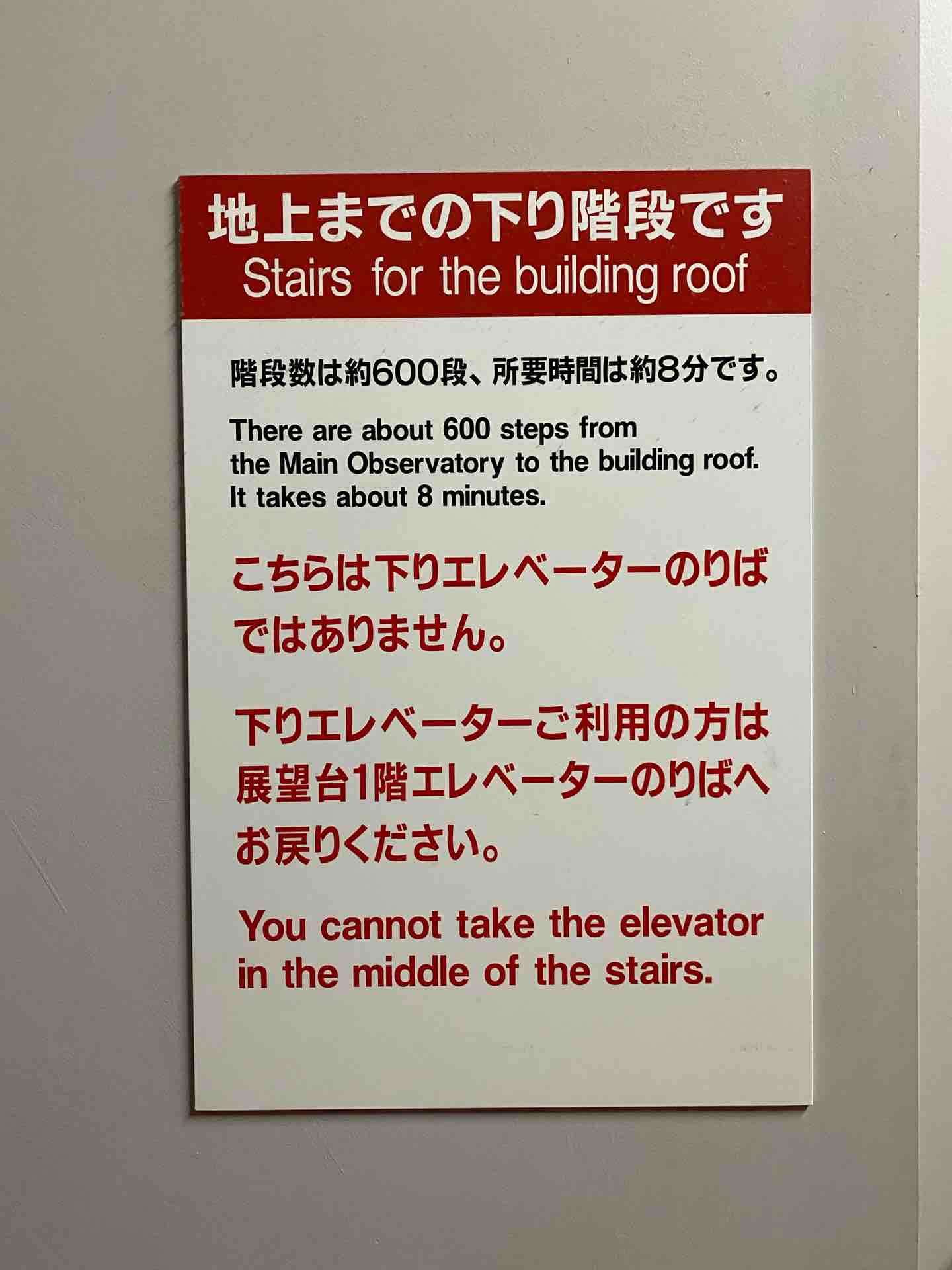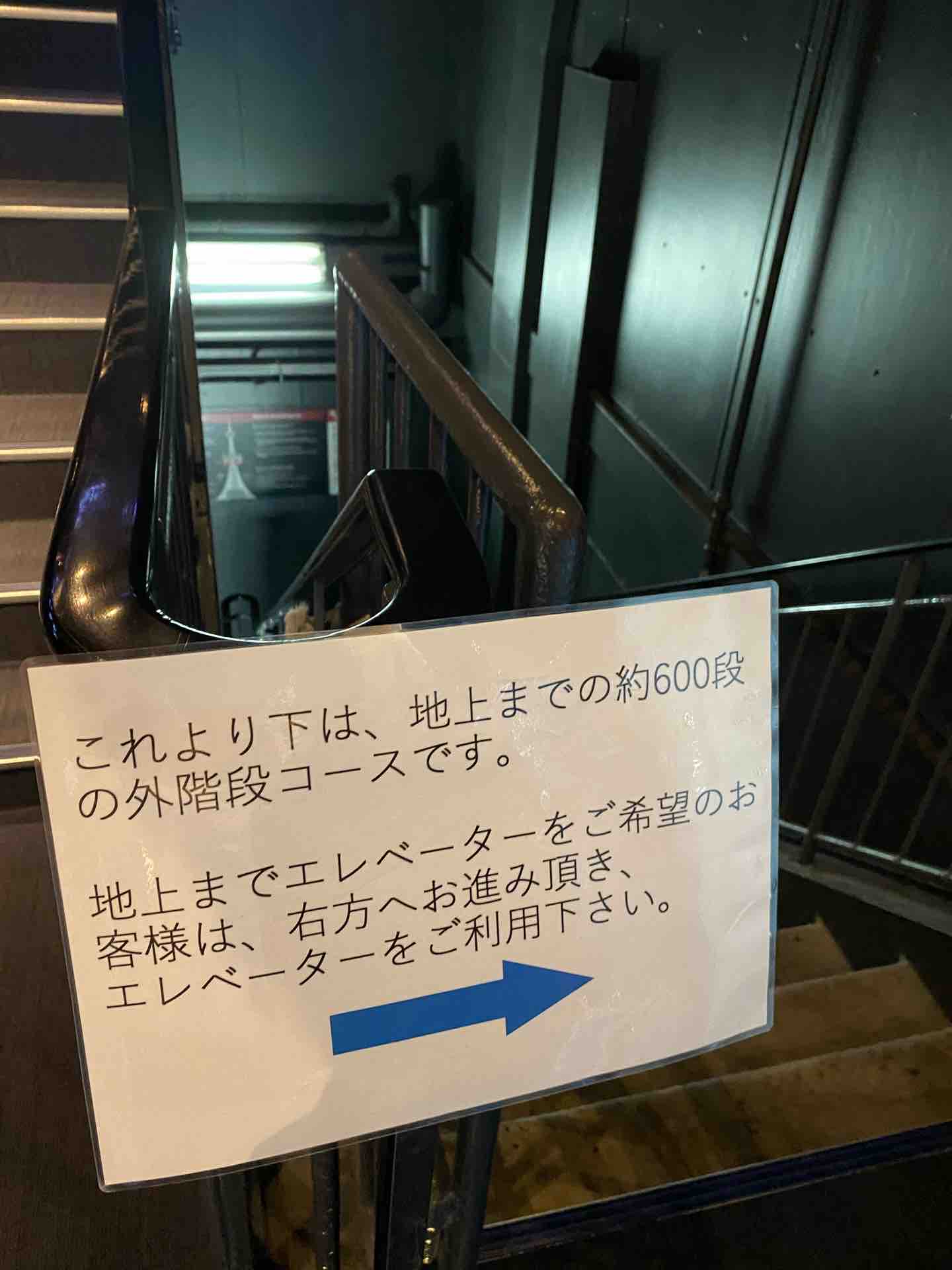 参ったなぁこれ。帰りはエレベーターで降りるつもりだったんだけど……。