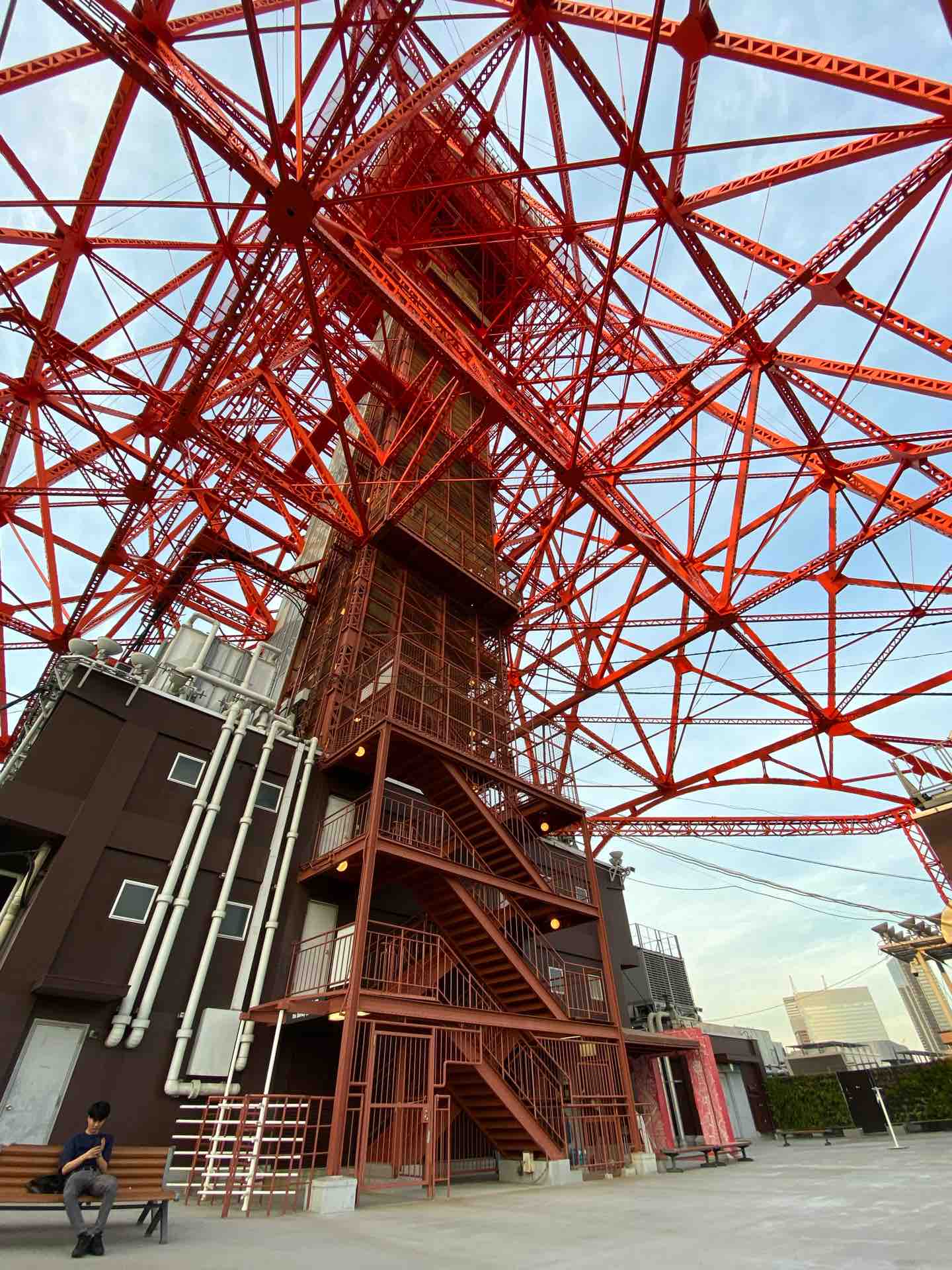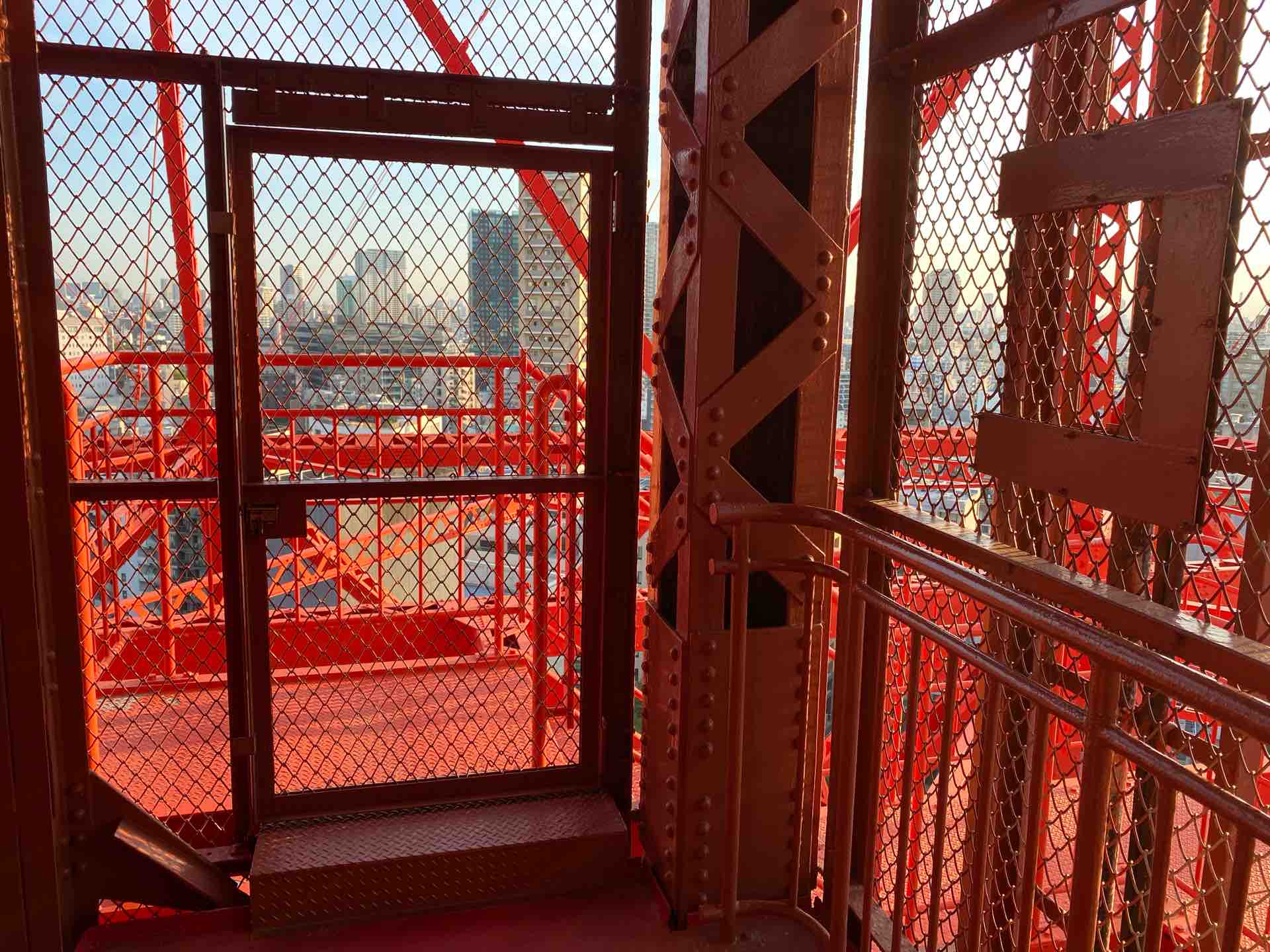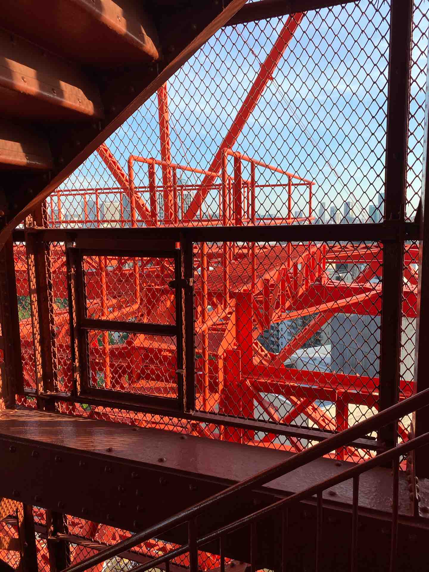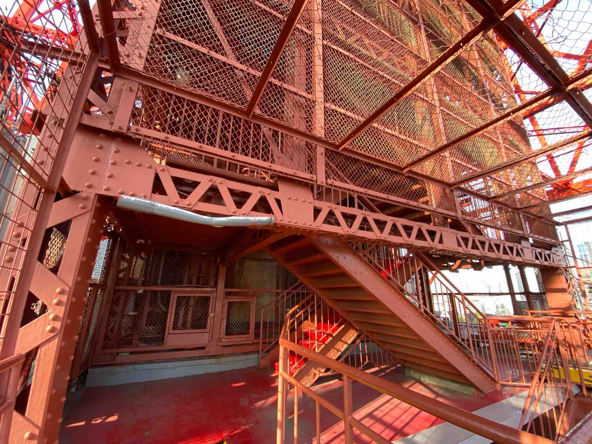 この階段を使ってタワーの塗装をする職人がいるのです。世の中は誰かの仕事でできている。