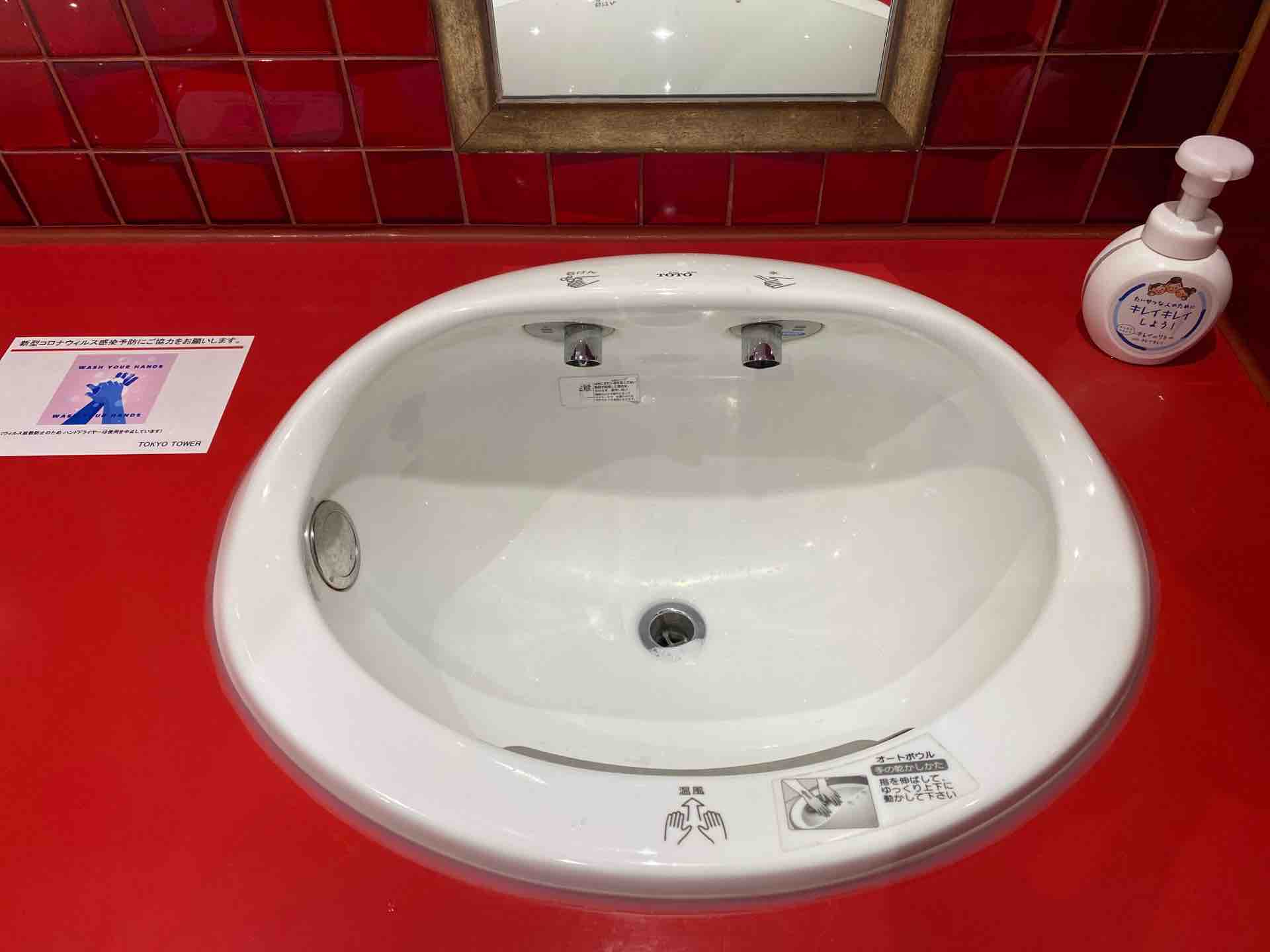 東京タワーの地上トイレには、昔ながらの百貨店にあるような、階段の踊り場に設置しているスタイルと、フロア中心に置いてあるものがあります。おそらく前者が階段のためバリアフリー的に後者を増設したのではないでしょうか。