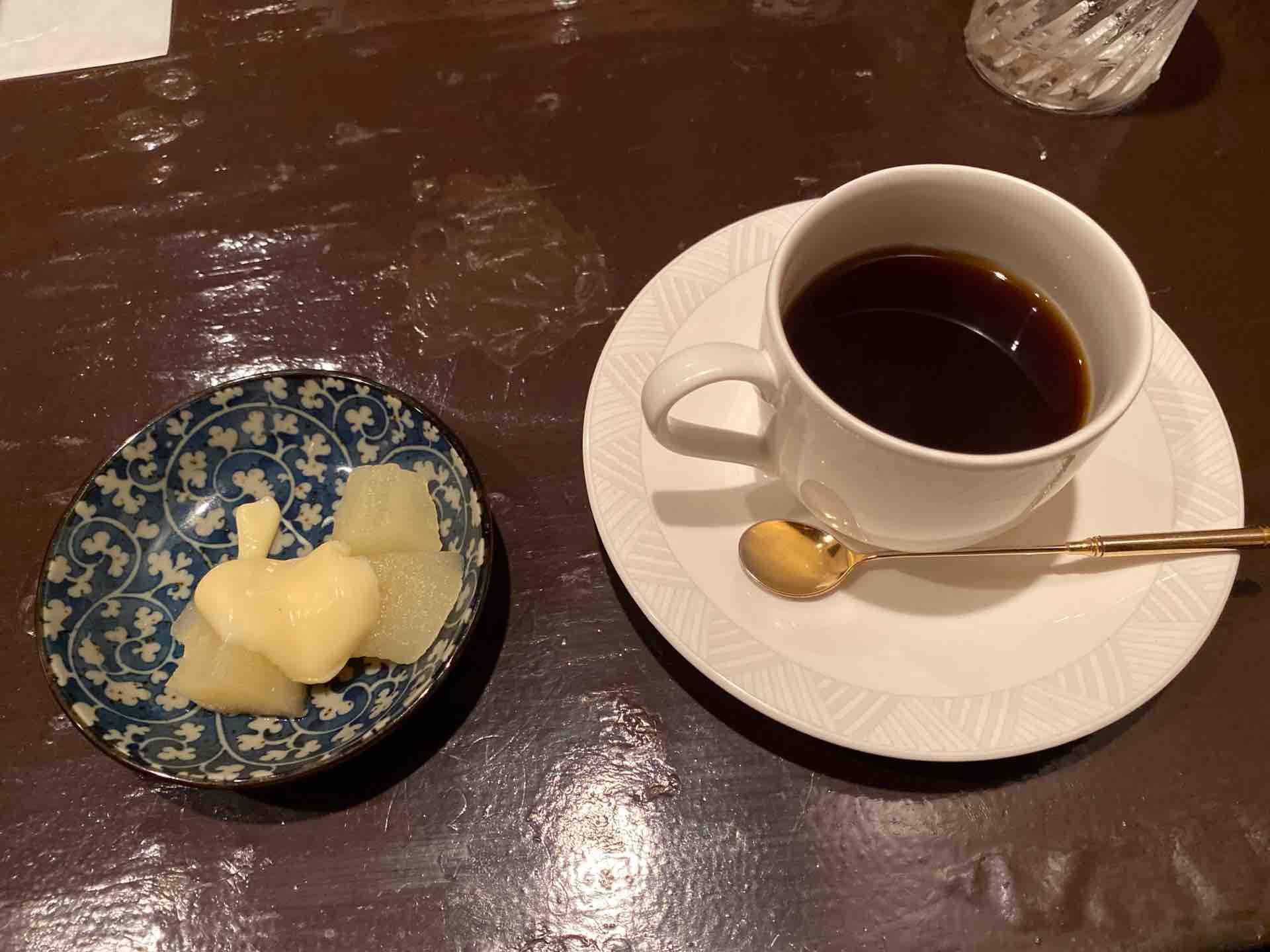 洋梨の練乳がけと、コーヒーがついて1100円。