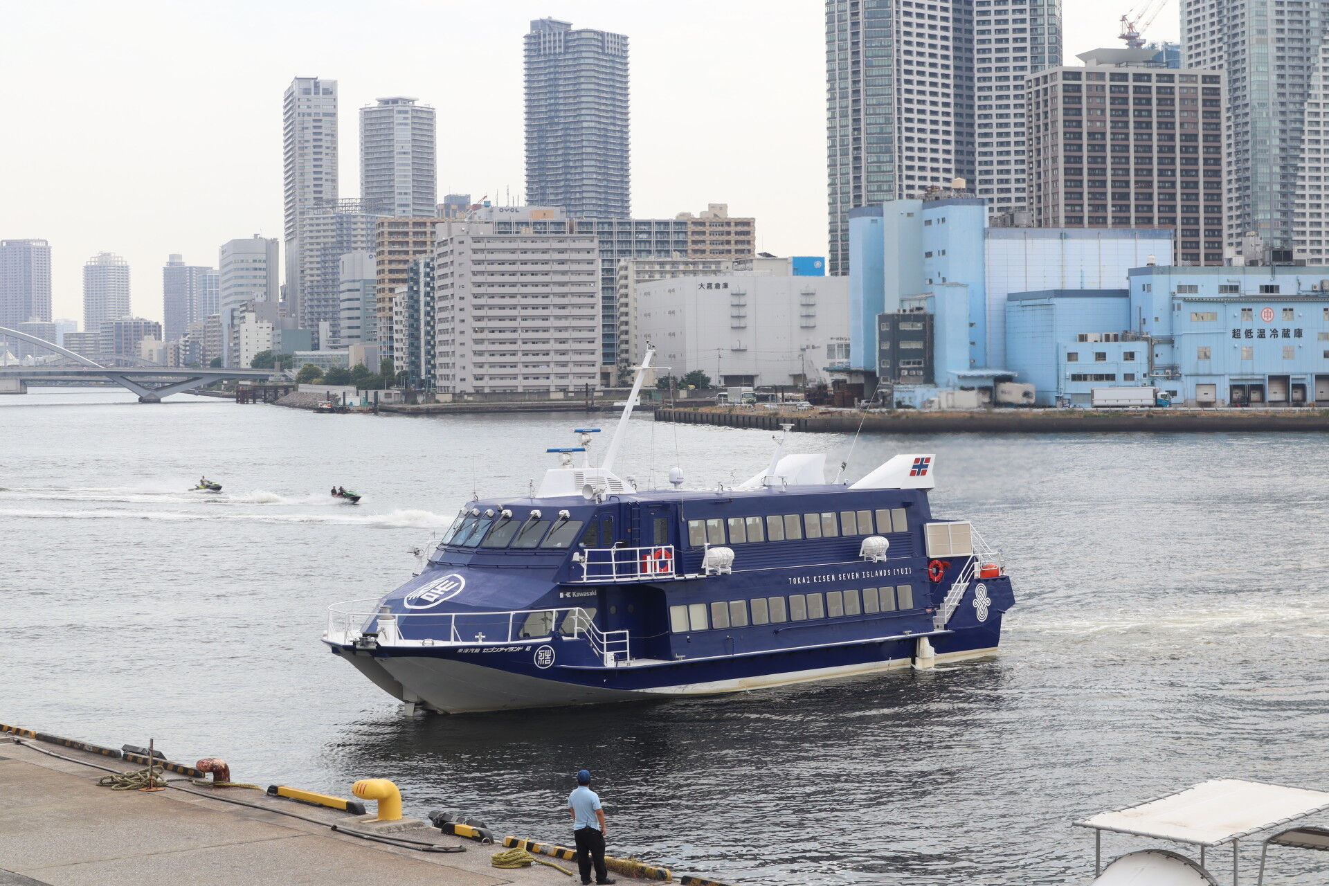 ジェットフォイルの滞泊場所はレインボーブリッジの近くで、時折並んでいる光景を見たものです。