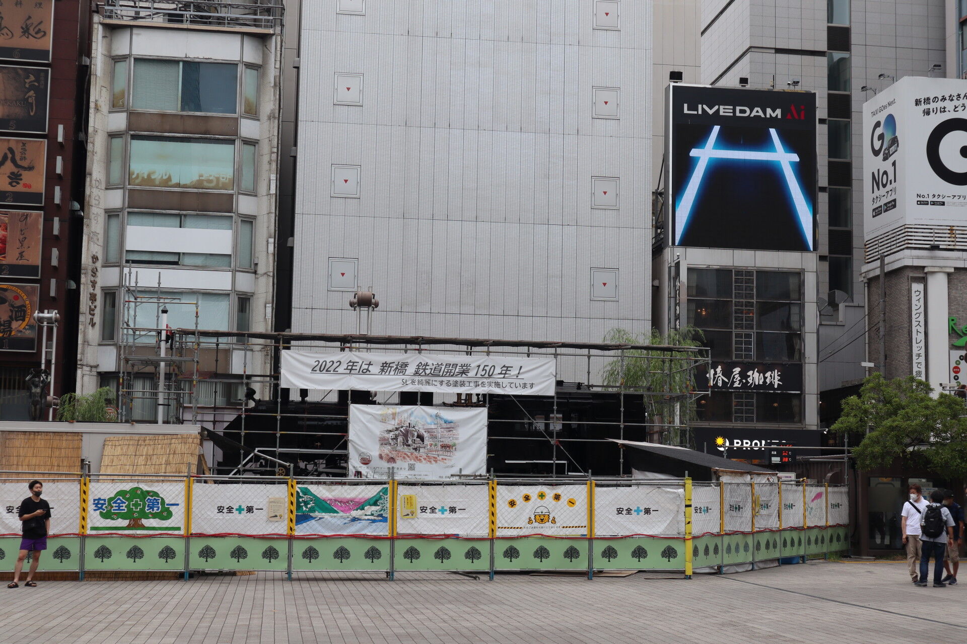 SL広場では鉄道開業150周年のための修復が行われていました。