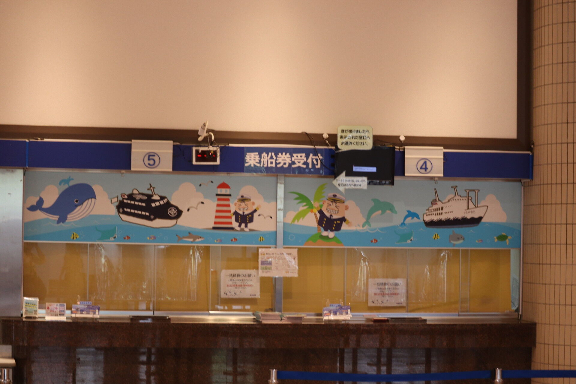すこし竹芝で一休みしますが、広いターミナルはエアコンが効いているとも言えず、あつい……。