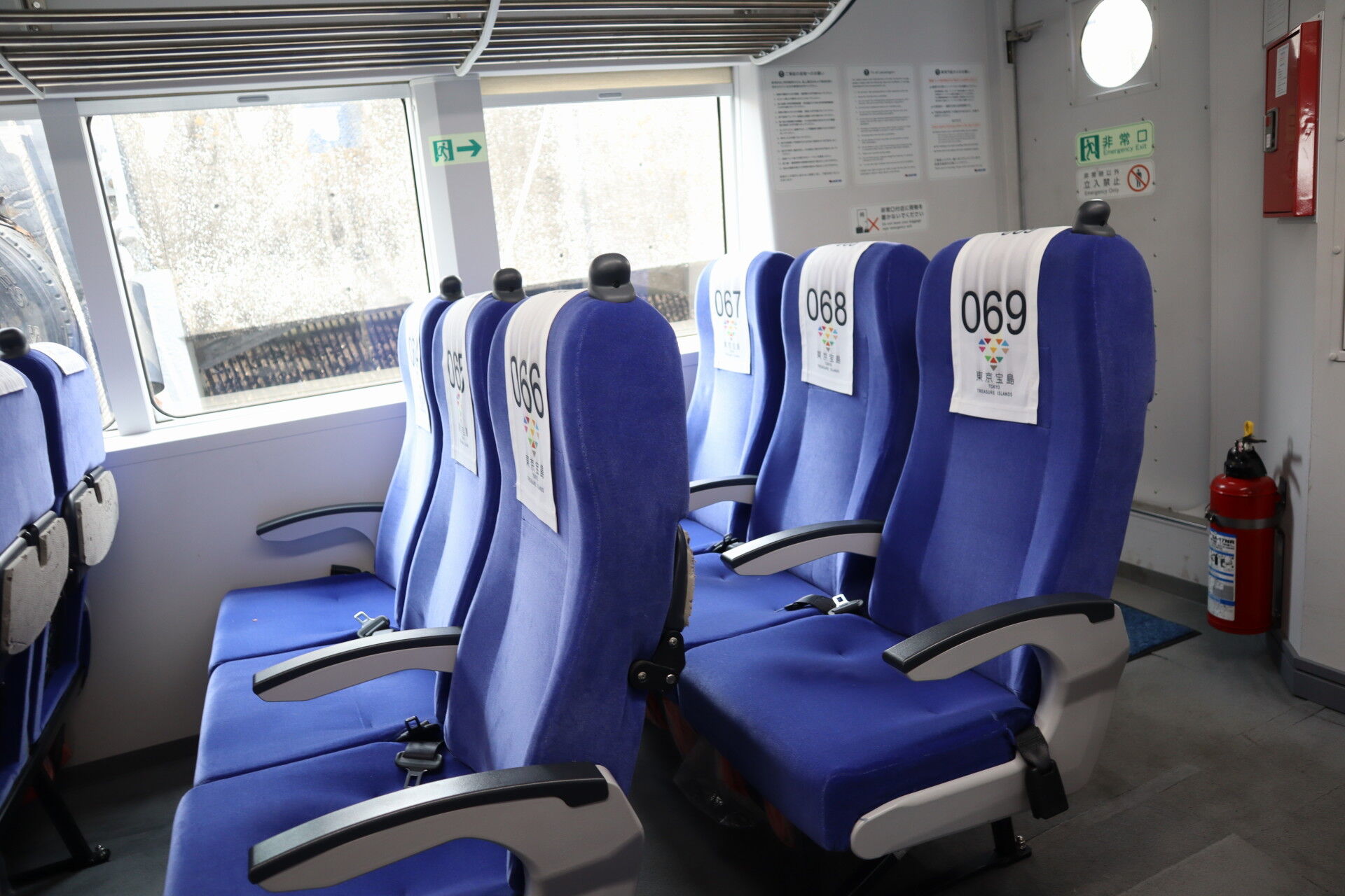 古い船には新造時、窓があったようですが(JFを導入している他社でも窓のある船もありますが)、鯨との衝突事故があってから塞がれています。
