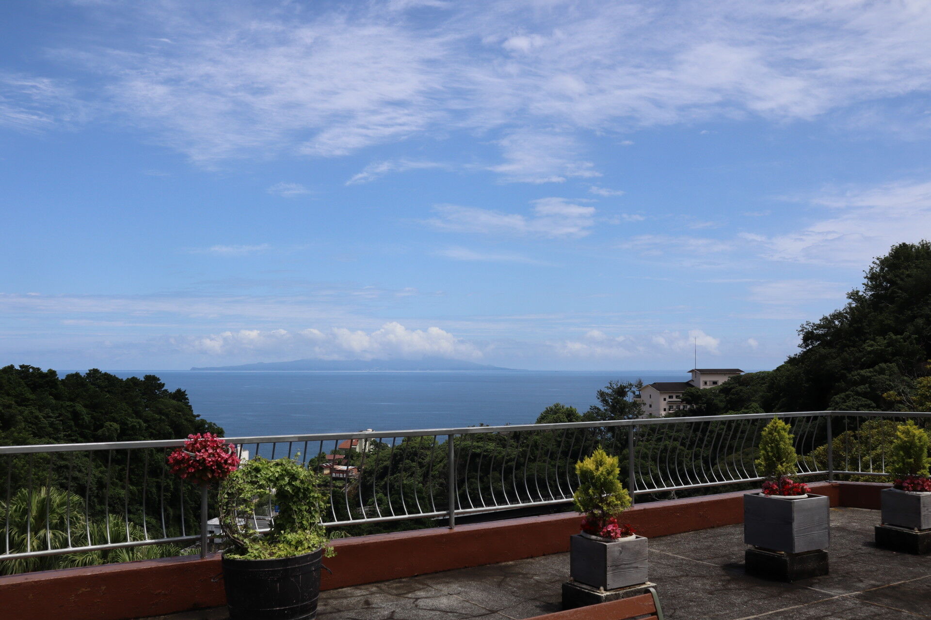 いつの間中空はすっきり晴れて、目の前には見果てぬ大島が浮かんでいました。