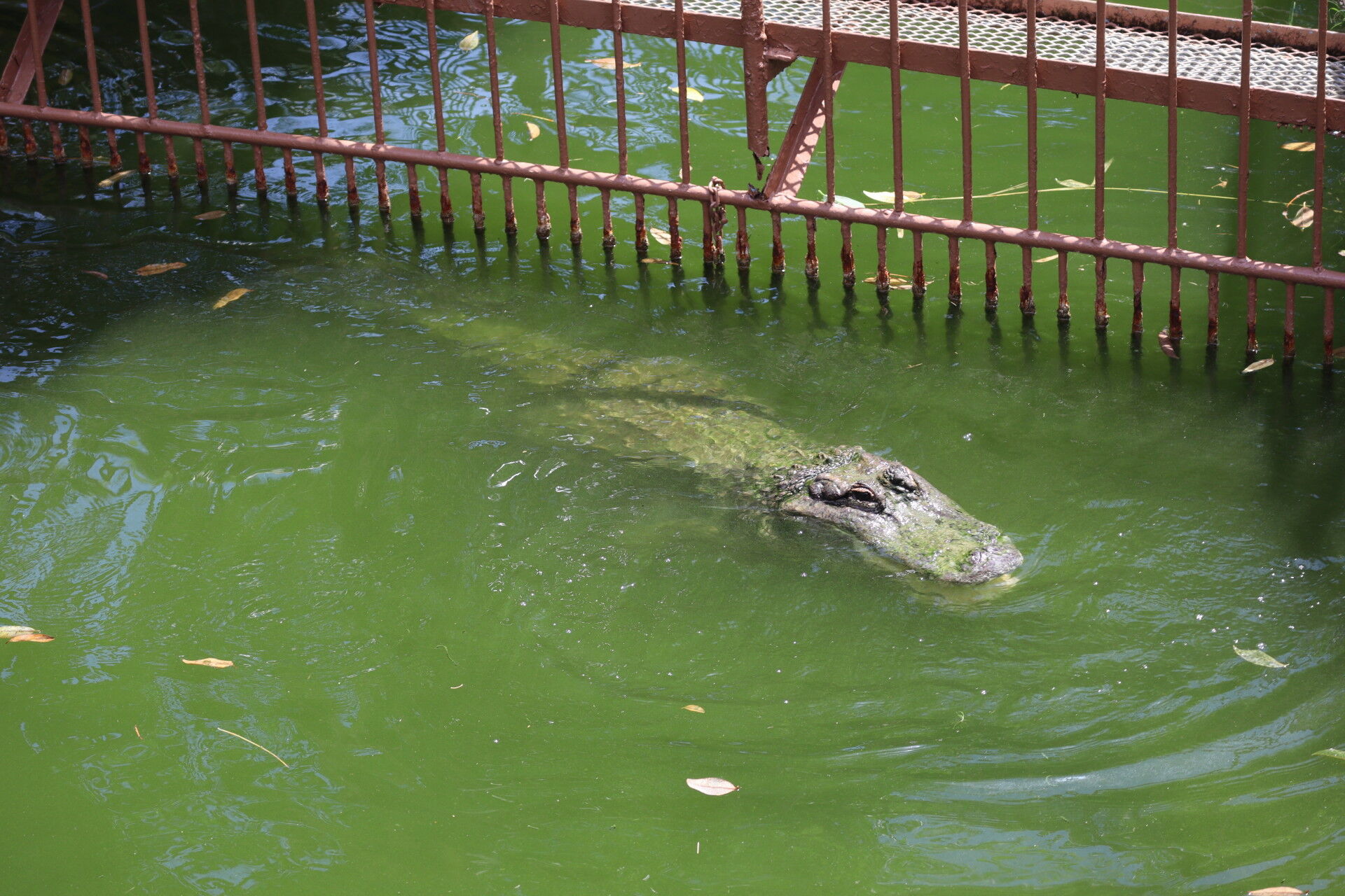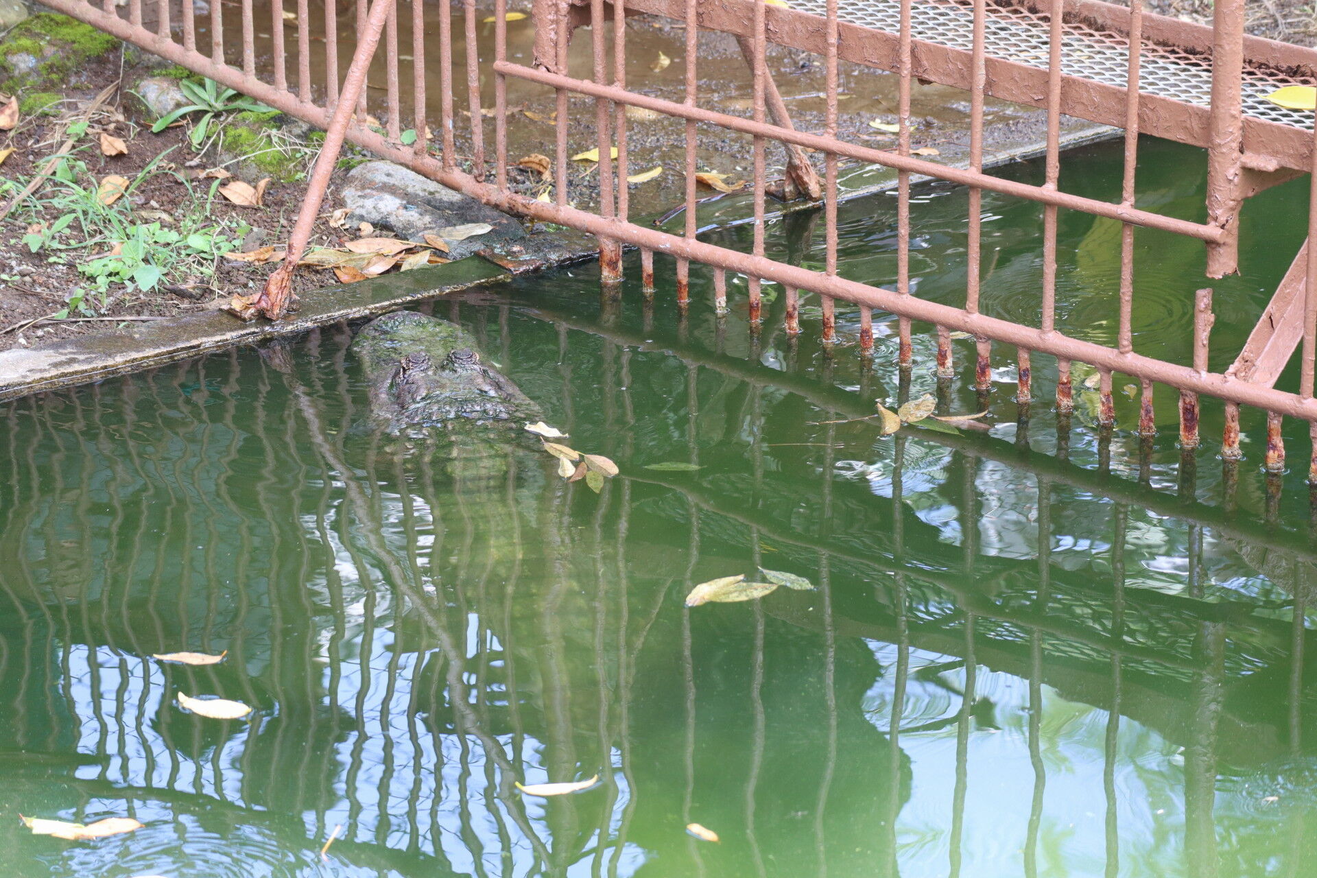 左上に見えるのは、中の島へ向かうための通路。ワニの区画を通る必要があるのです。