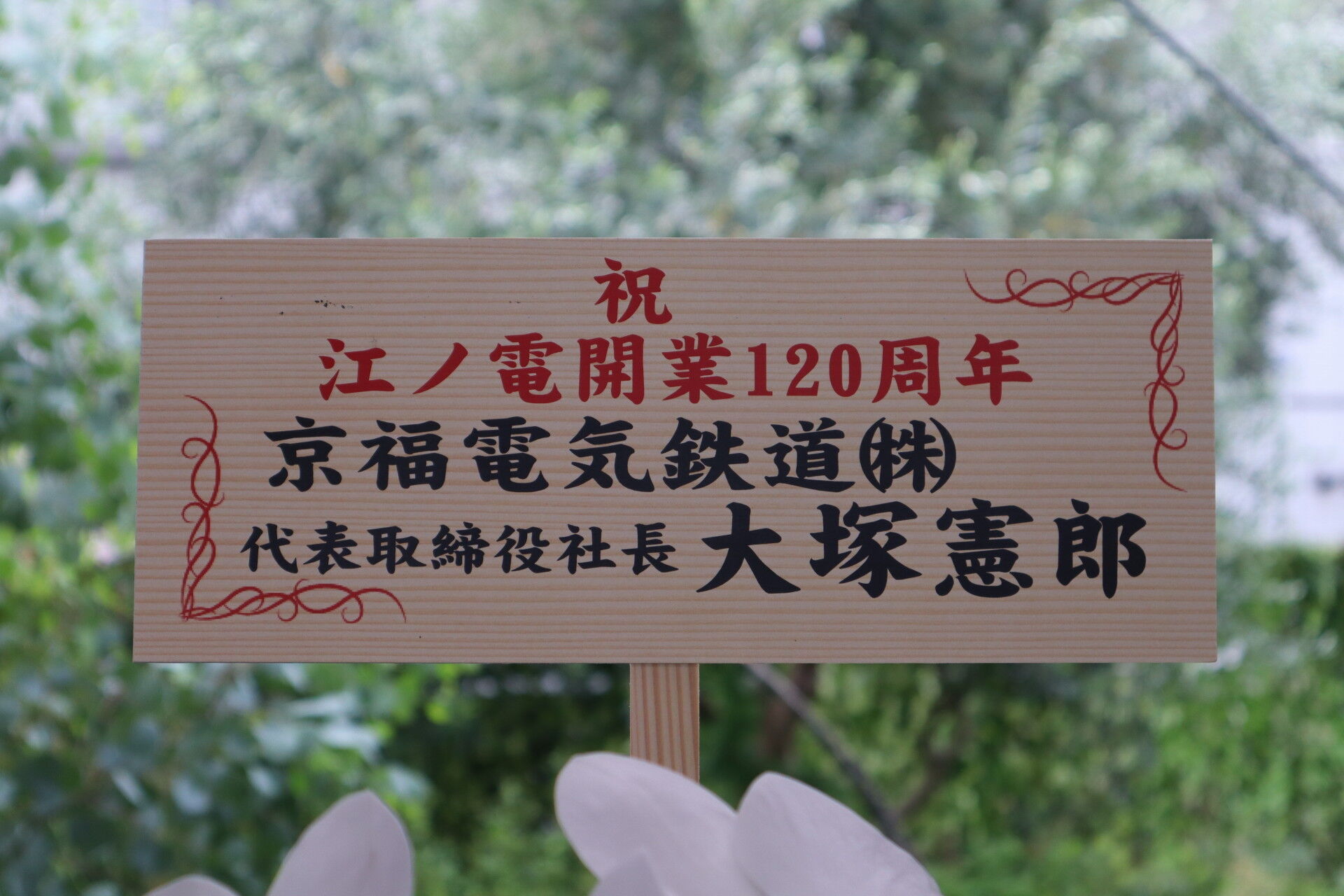 皆様方、これからも江ノ電に変わらぬご愛顧を賜りますようお願いいたしますとともに、当社の先人達が皆様のご期待に応えるべく努力を惜しまなかったように、今度は私どもが似たような努力を積み重ねて参る気持ちを新たにいたしましたところでございます。