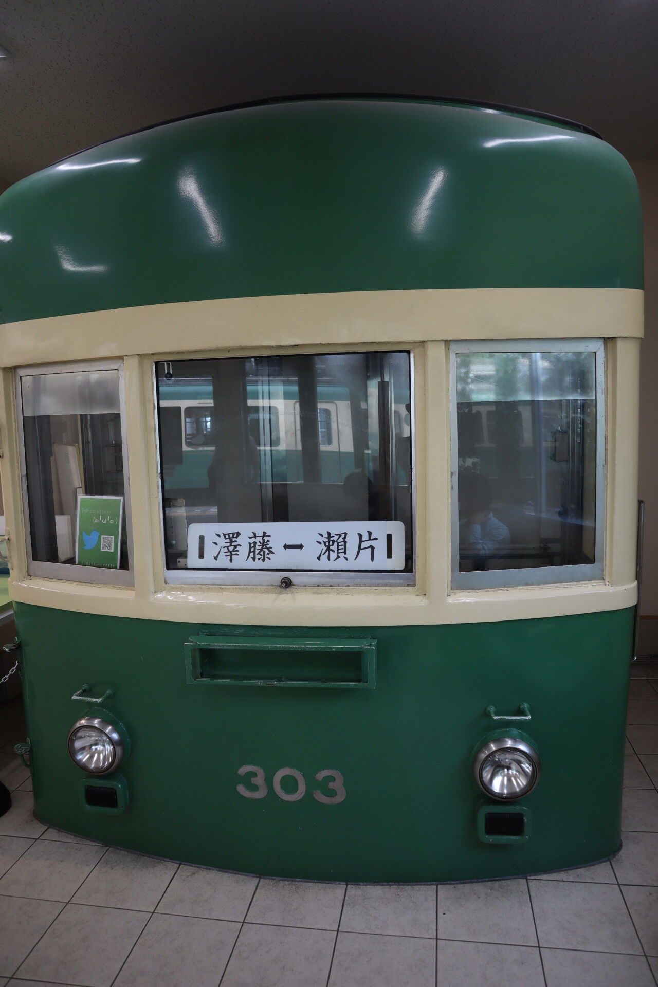藤沢ー片瀬のサボは、江ノ島駅待合室で展示中です。