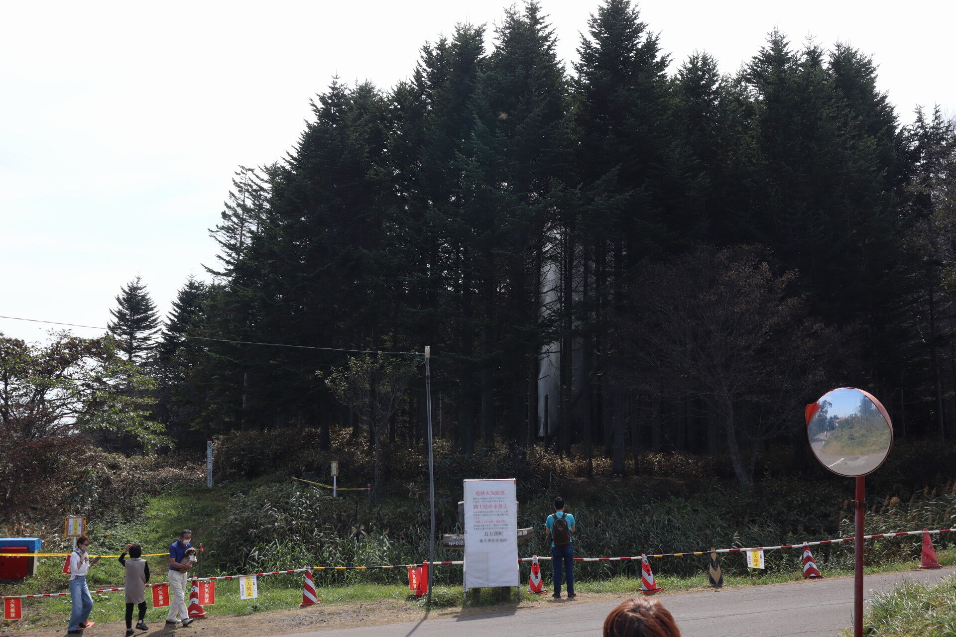 後ろにある岩石はなんなんでしょう。二股温泉の溶岩かしら。