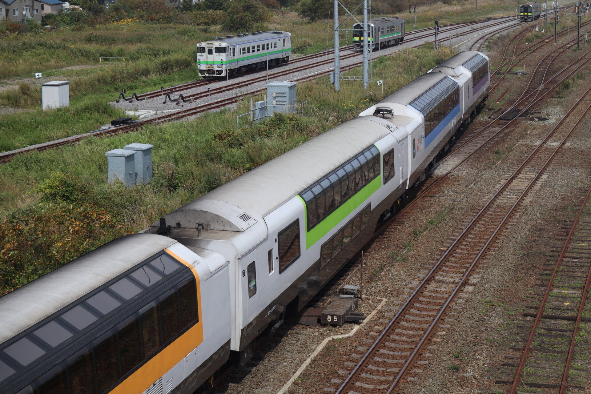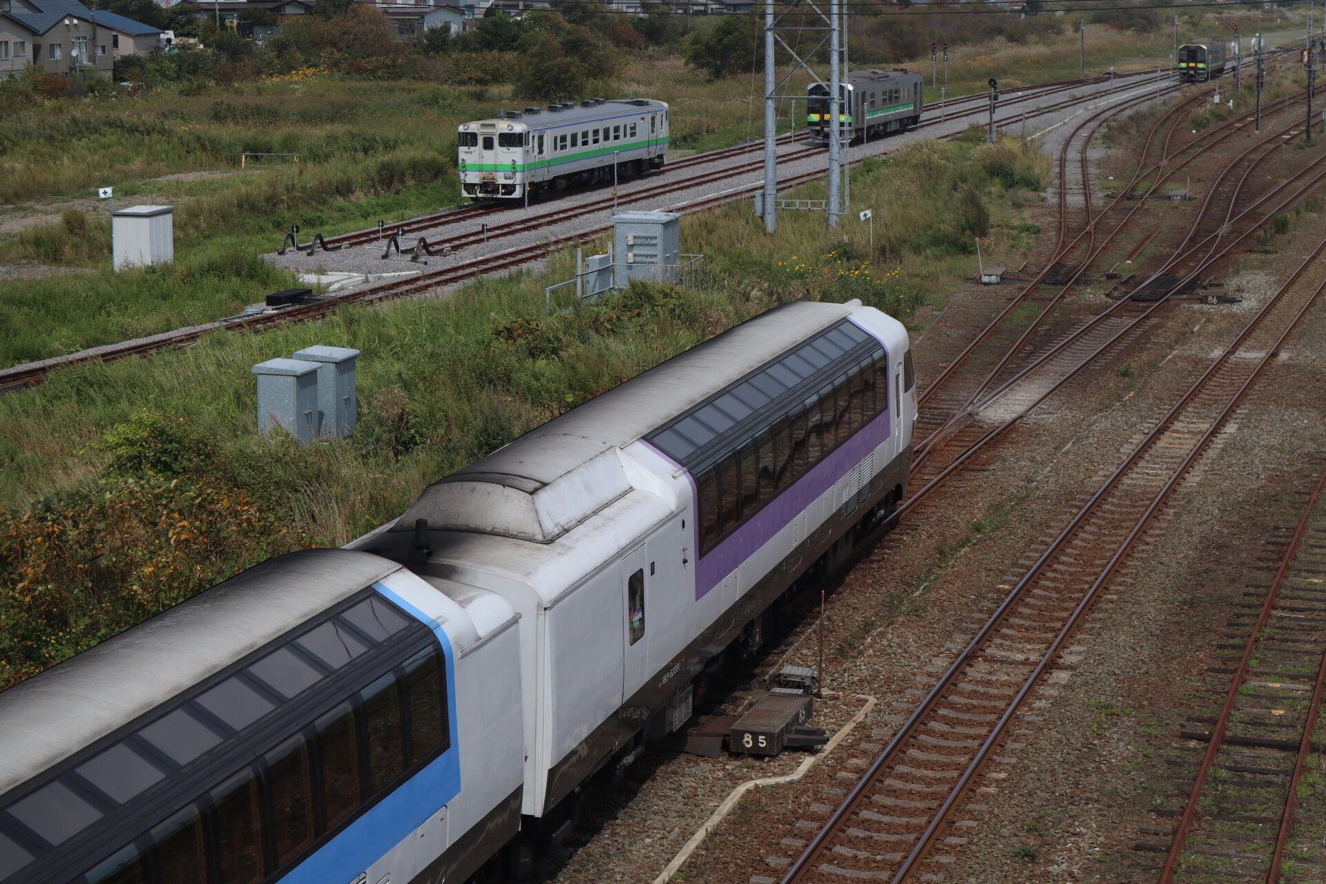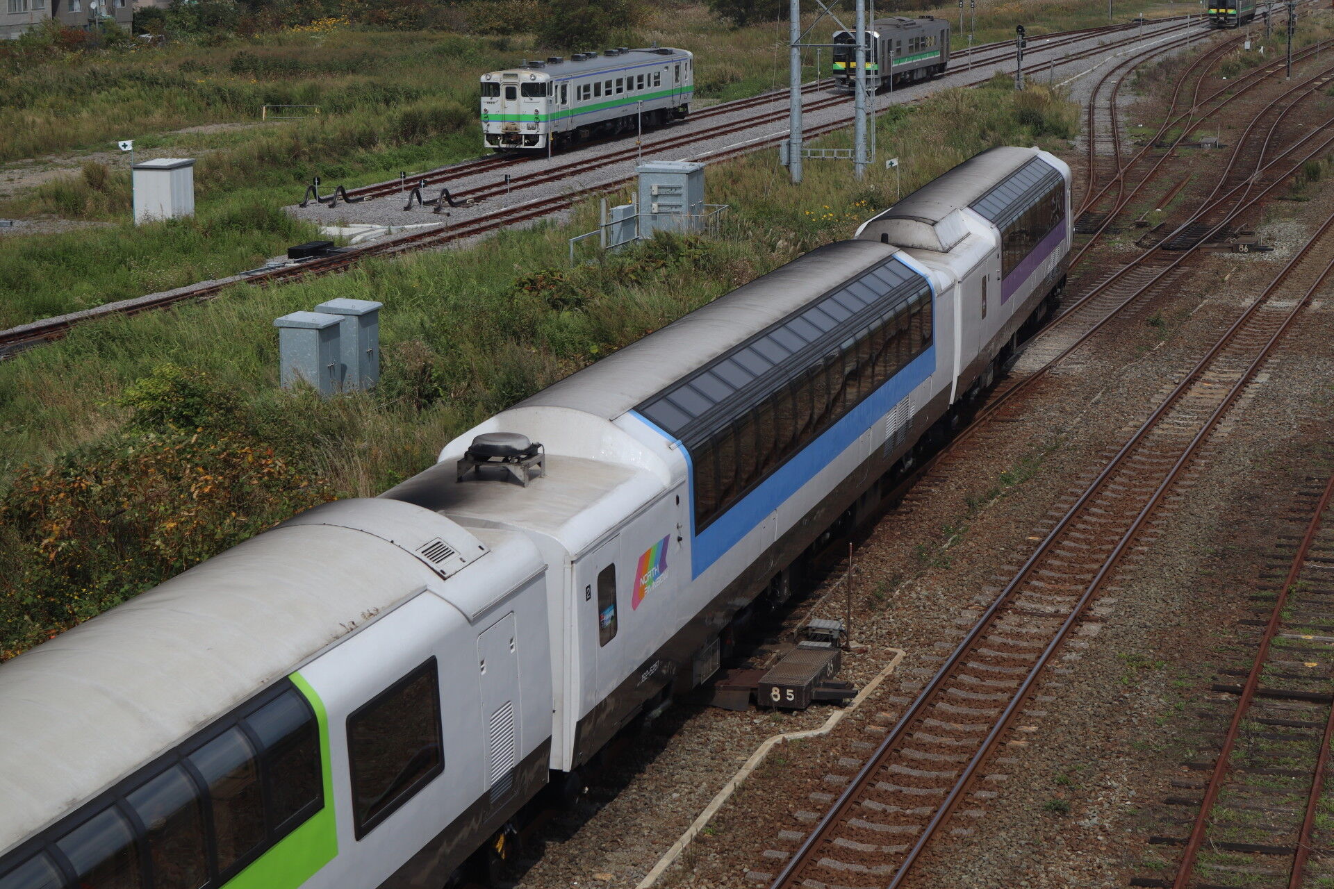 写真右手奥には、かつて長万部機関区の扇形庫があり、