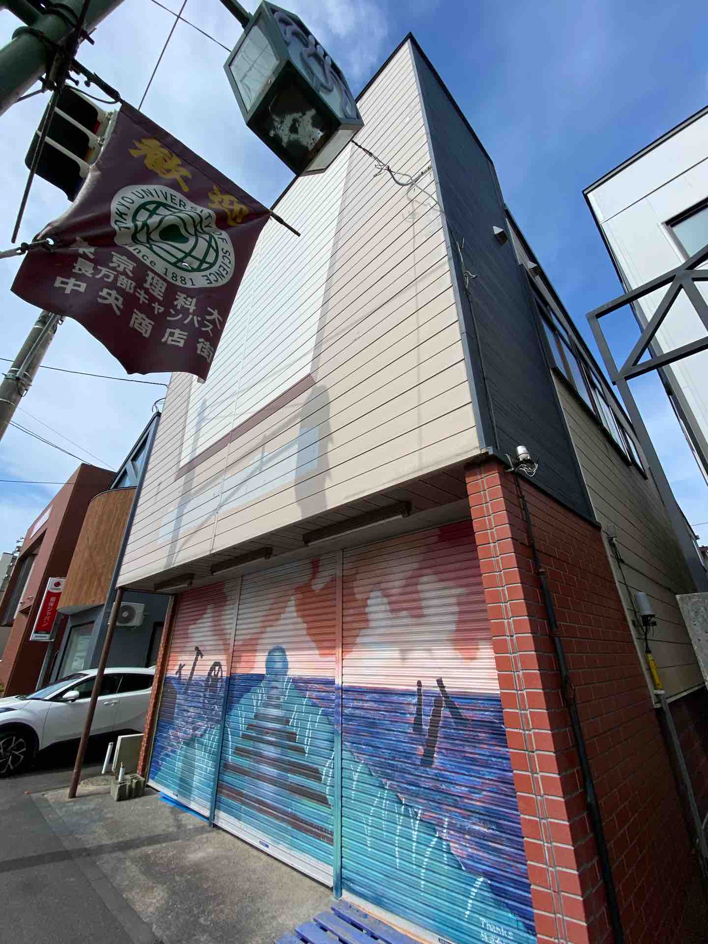 また、シャッターにはその一環で大学生アーティストの絵が描かれています。
