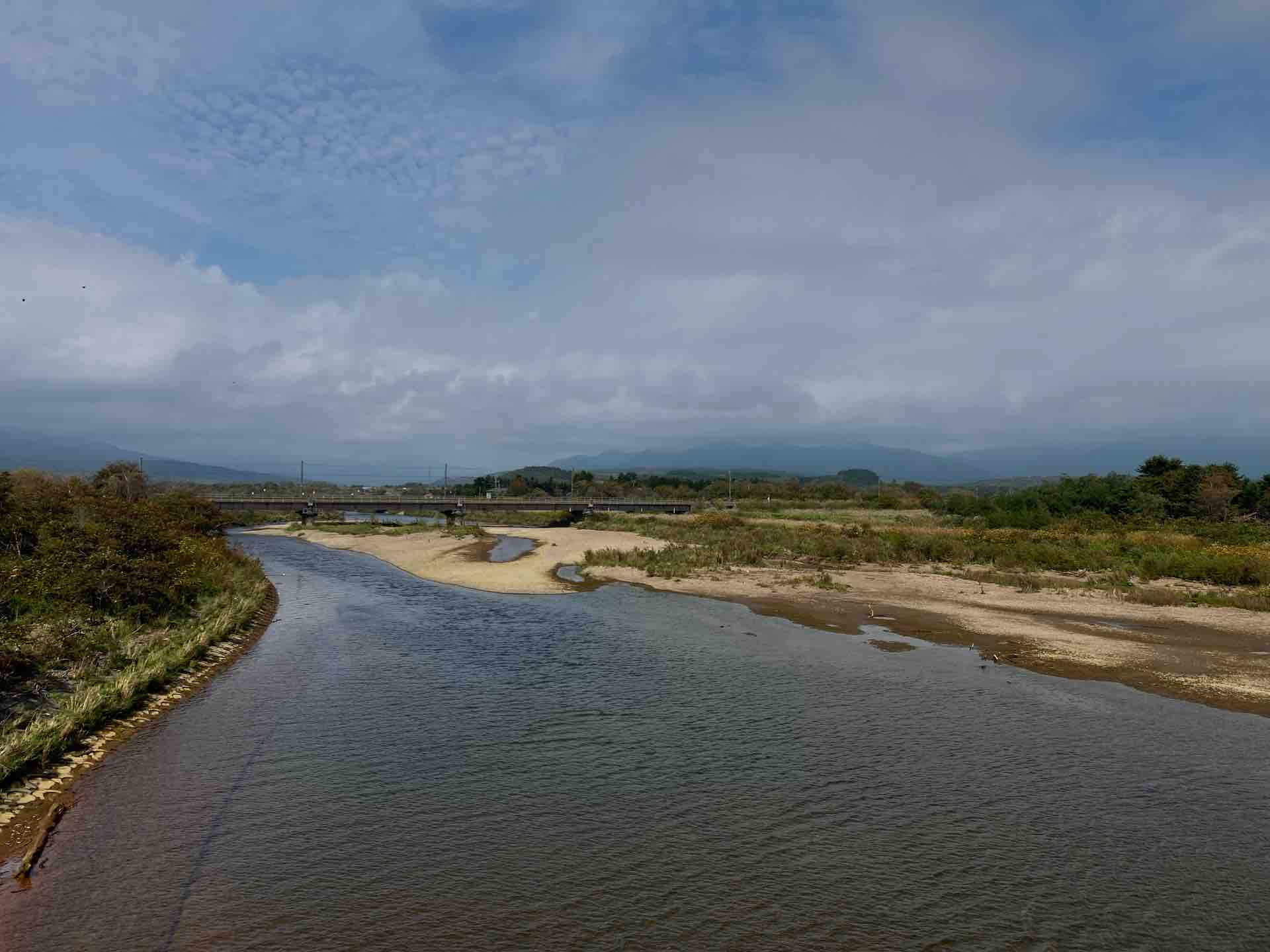 北海道らしい雄大な川です。ちょっと川沿いの道を歩いて列車を待ち構えてみます。