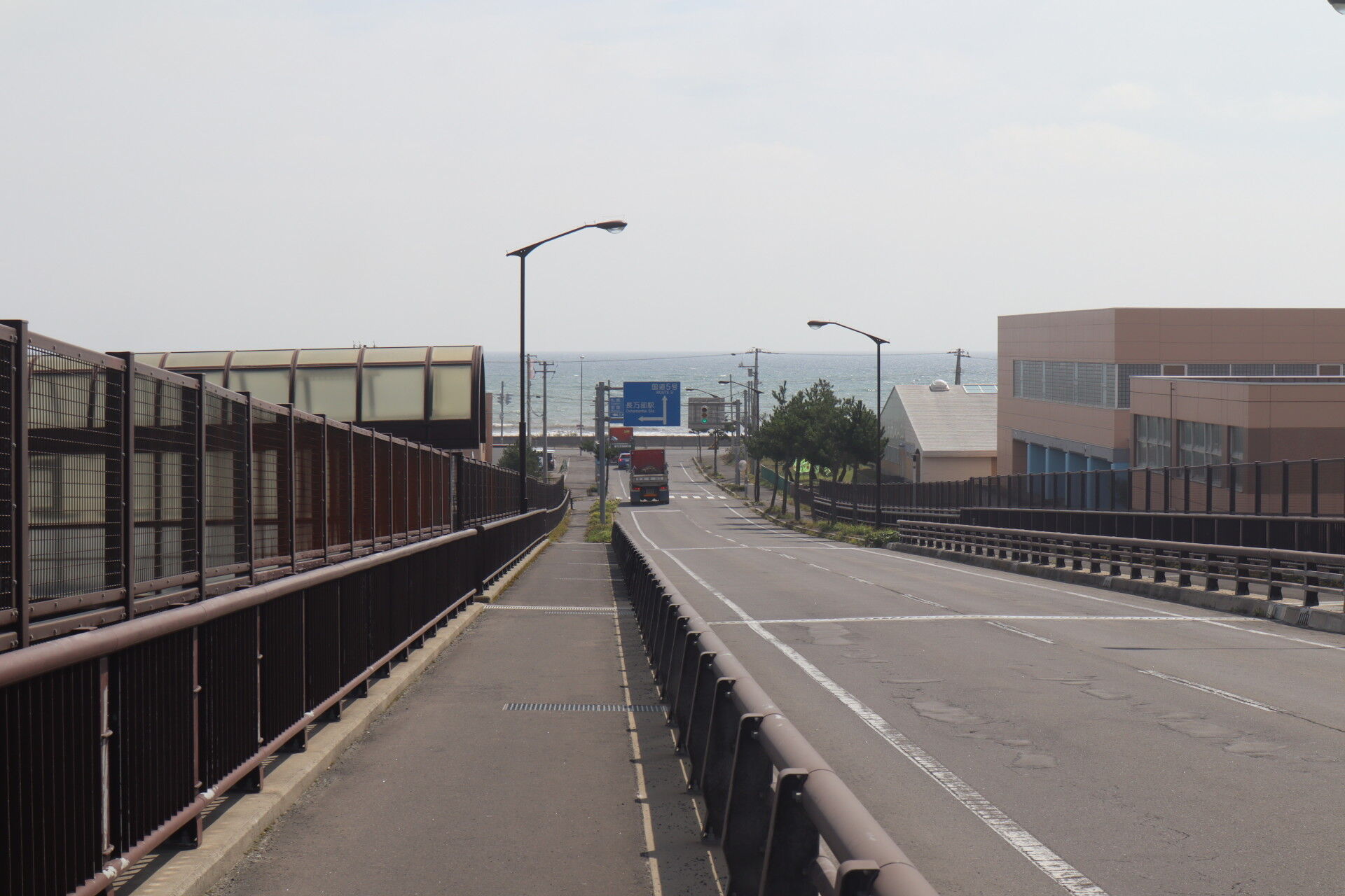 ピンクの線の向こうに長万部中央跨線橋がありました。
