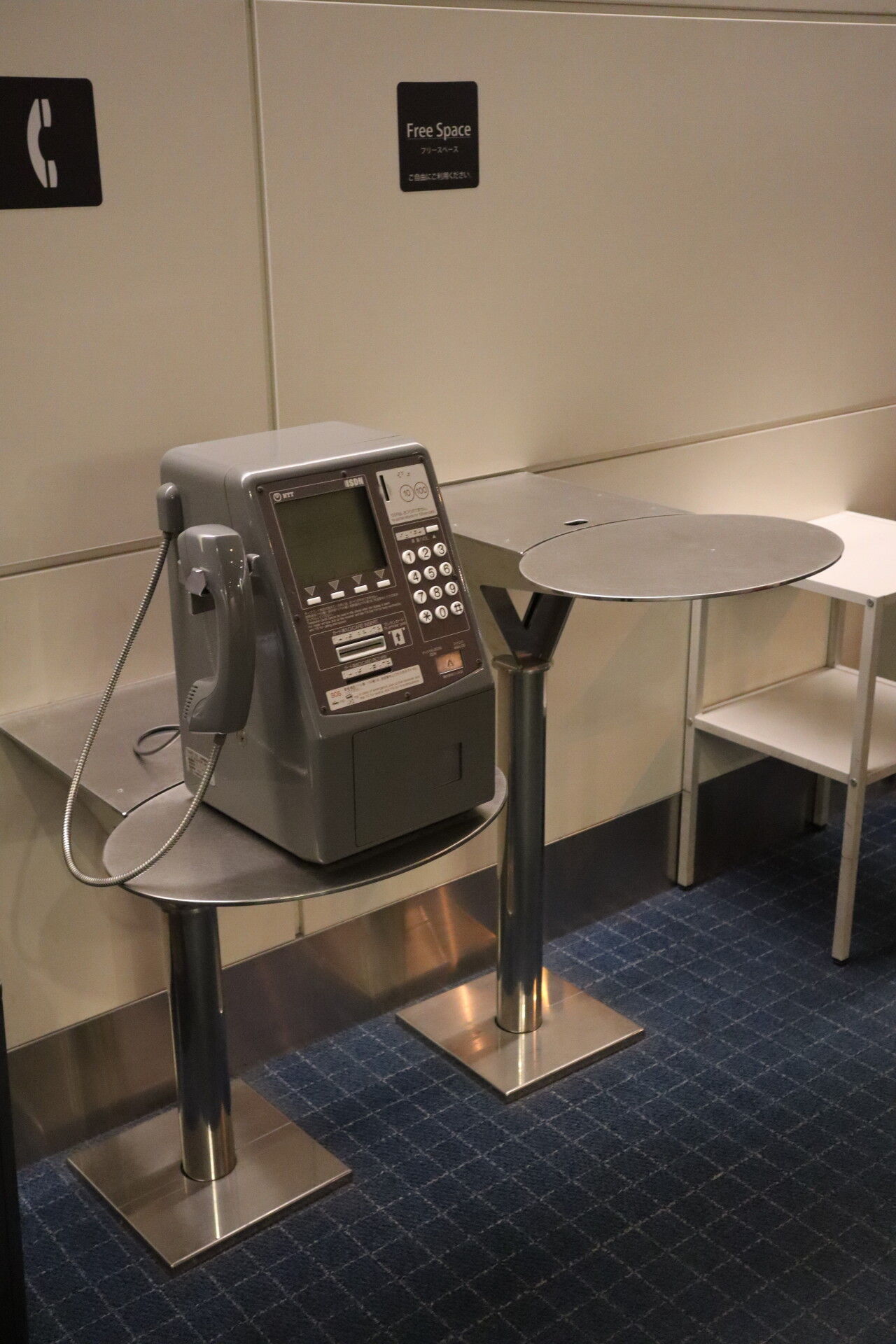 バスラウンジの公衆電話、滅多に出会えなさそうなので。