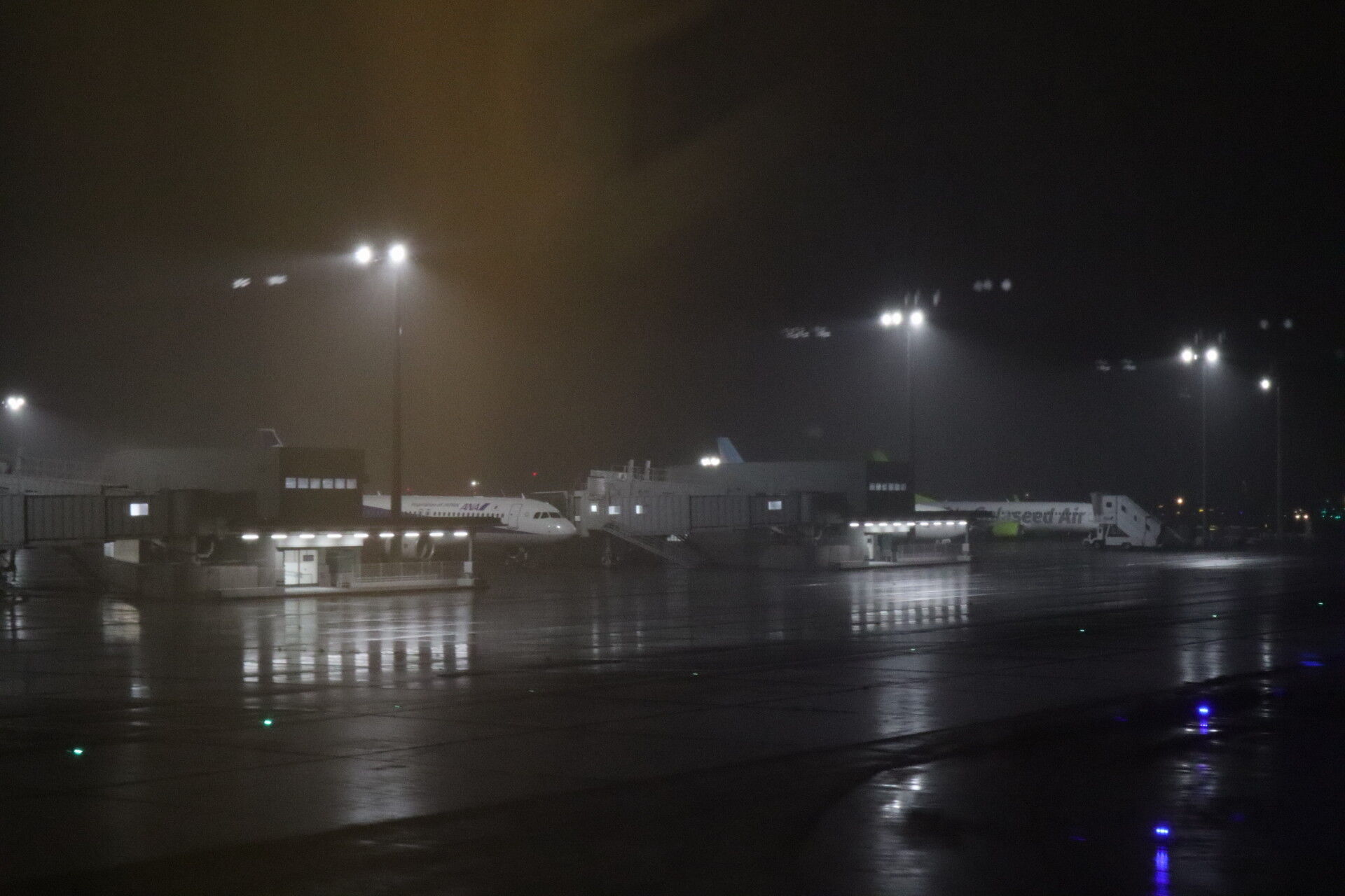 羽田は雨。