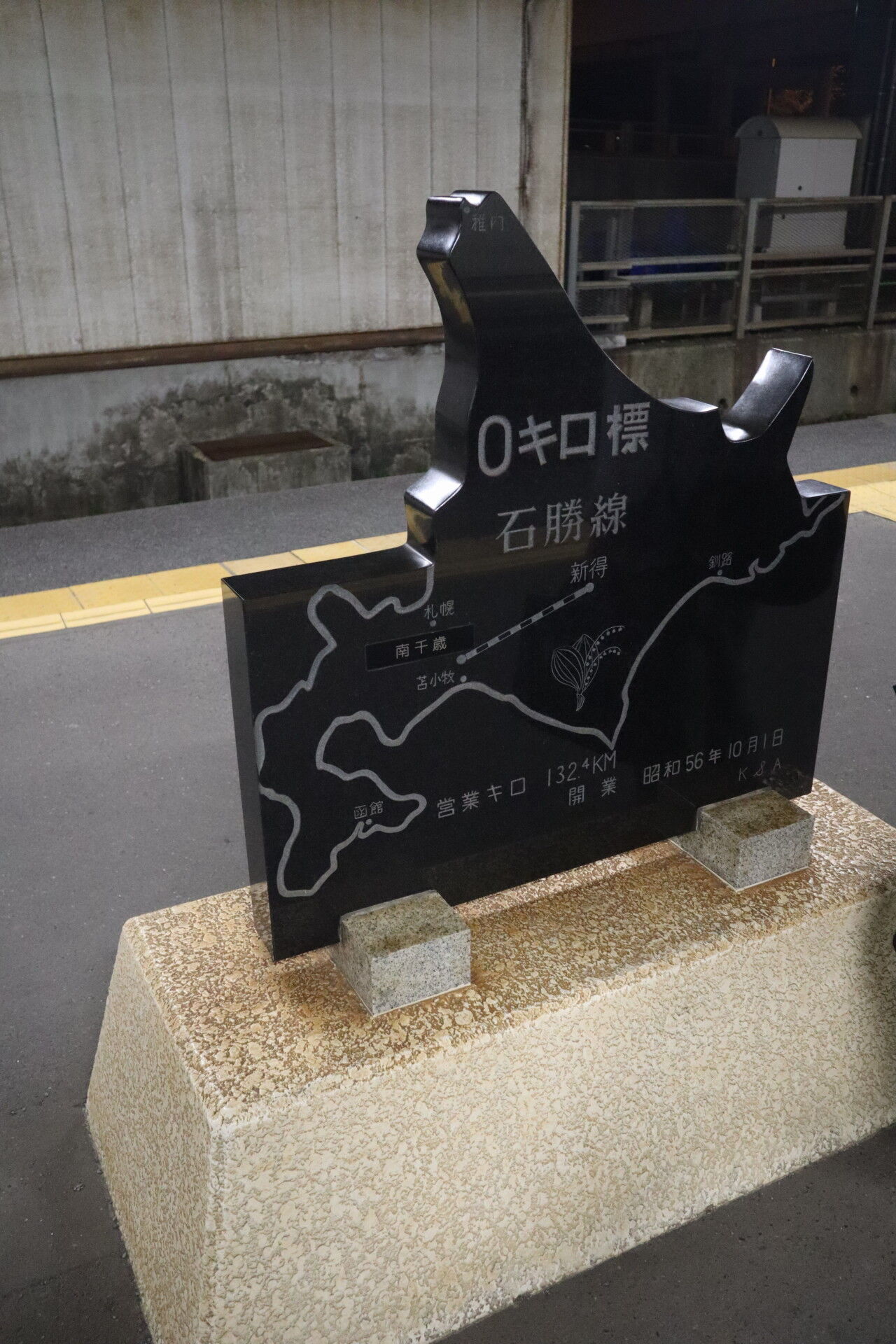 石勝線ゼロキロポスト。