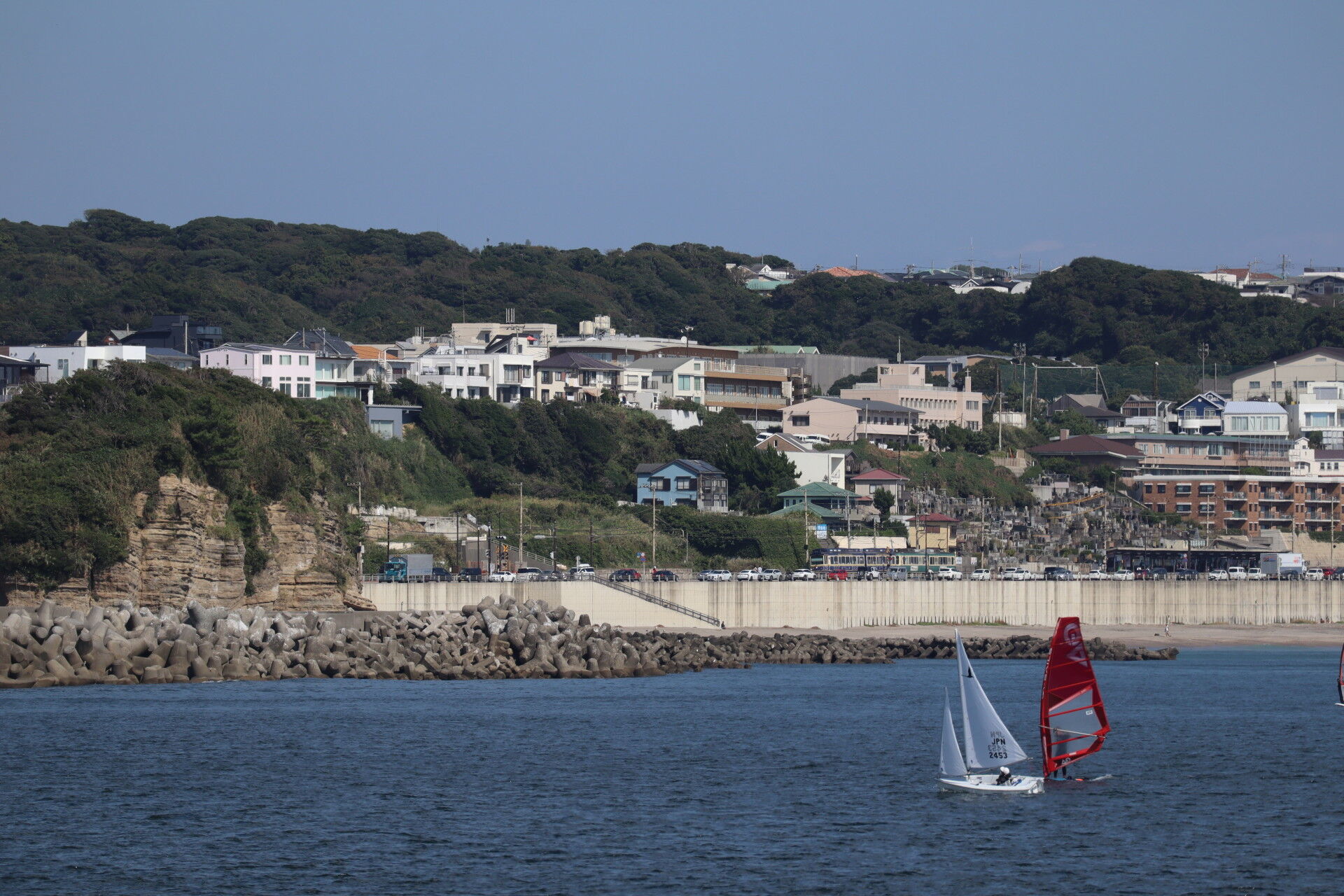 漂うヨット。渋滞する道路をよそにスイスイと進みます。
