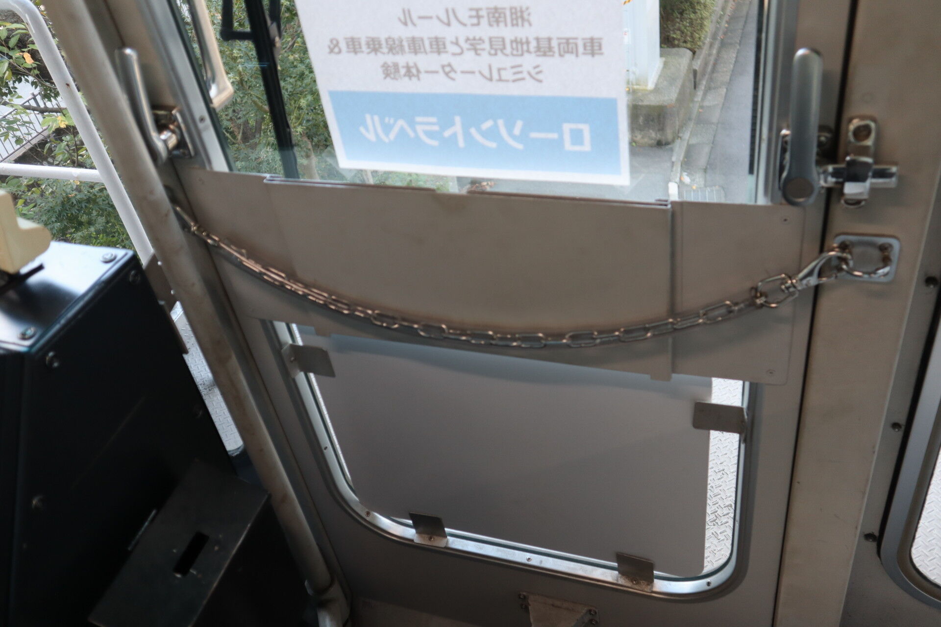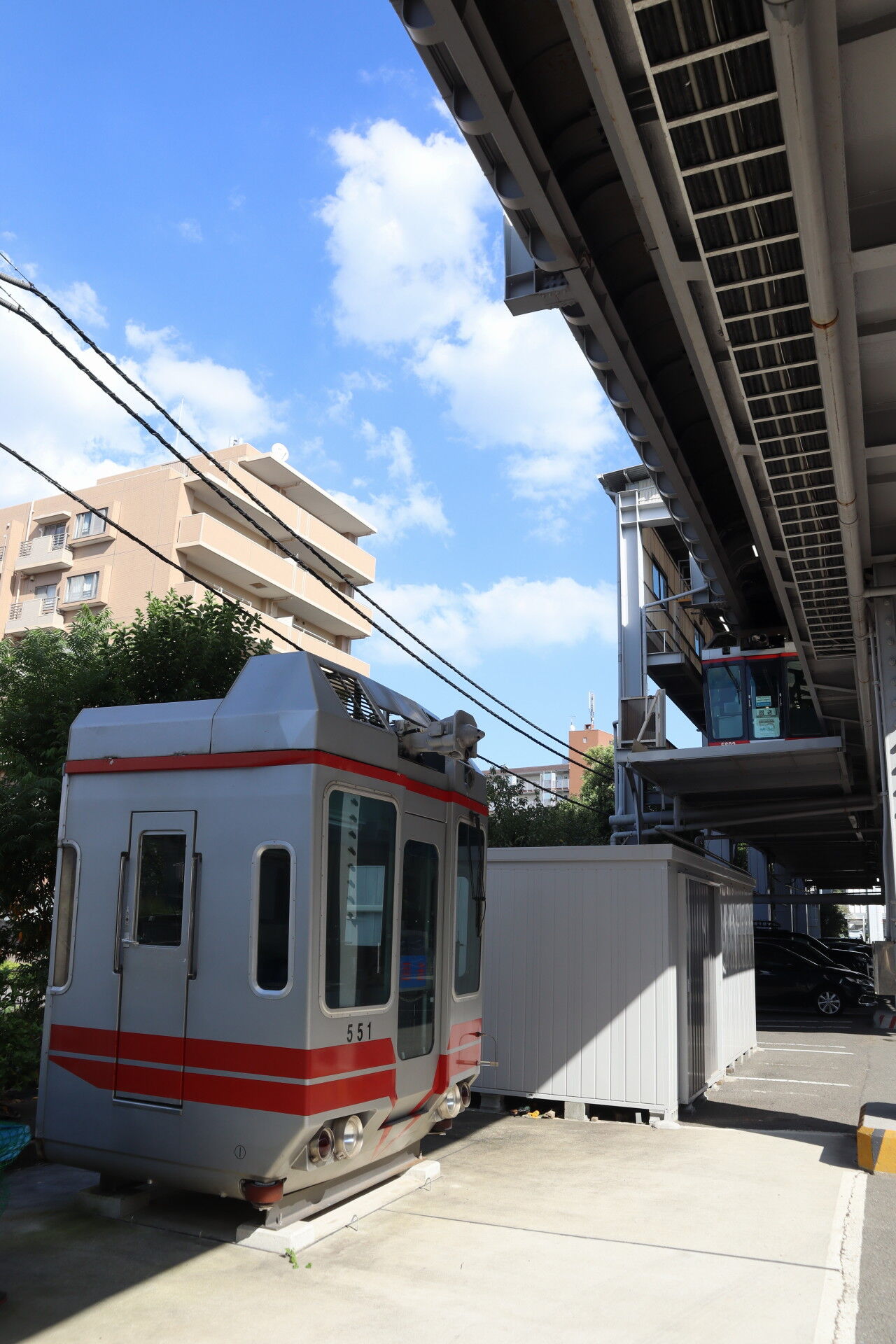 よく見ると、取手がレールの形をしています。これ、モノレールの架線です。