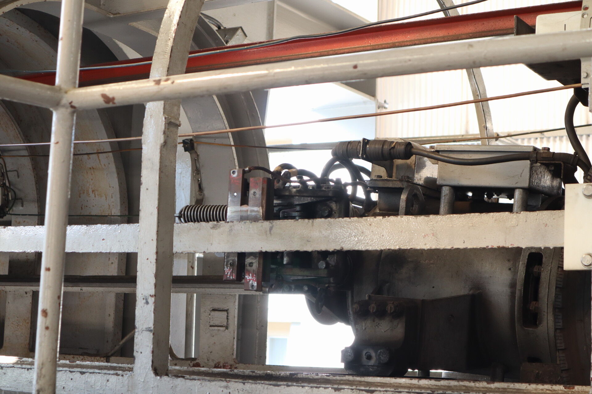 安全鋼索が車体を垂らしているので二重の安全性を確保しています。